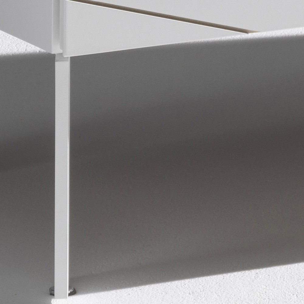 Os pés elevados de 12 cm tornam a estrutura visualmente mais leve e facilitam a limpeza do piso, contribuindo para um visual elegante e proporcional.
