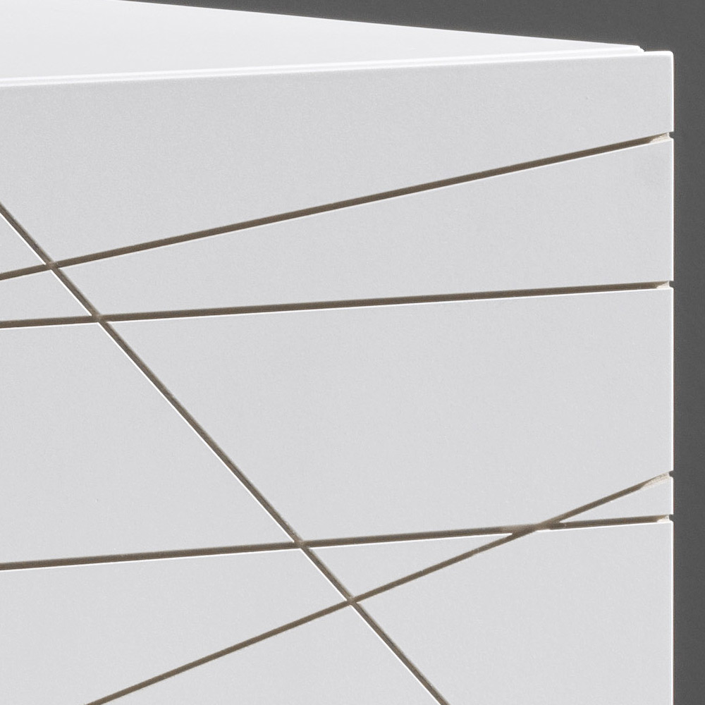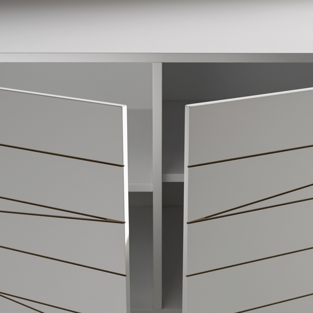Um aparador visualmente impactante, projetado para espaços contemporâneos e sofisticados. As portas apresentam um refinado design gráfico gravado, criando um entrelaçamento dinâmico de linhas e adicionando movimento à superfície, transformando a peça em um verdadeiro elemento decorativo.