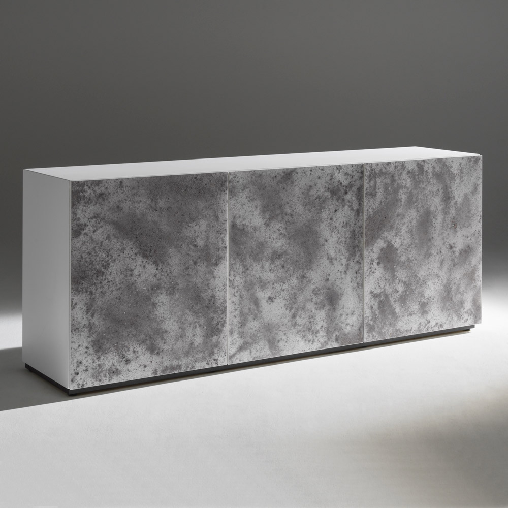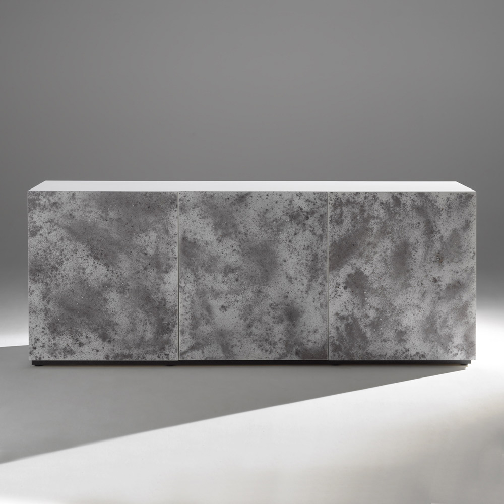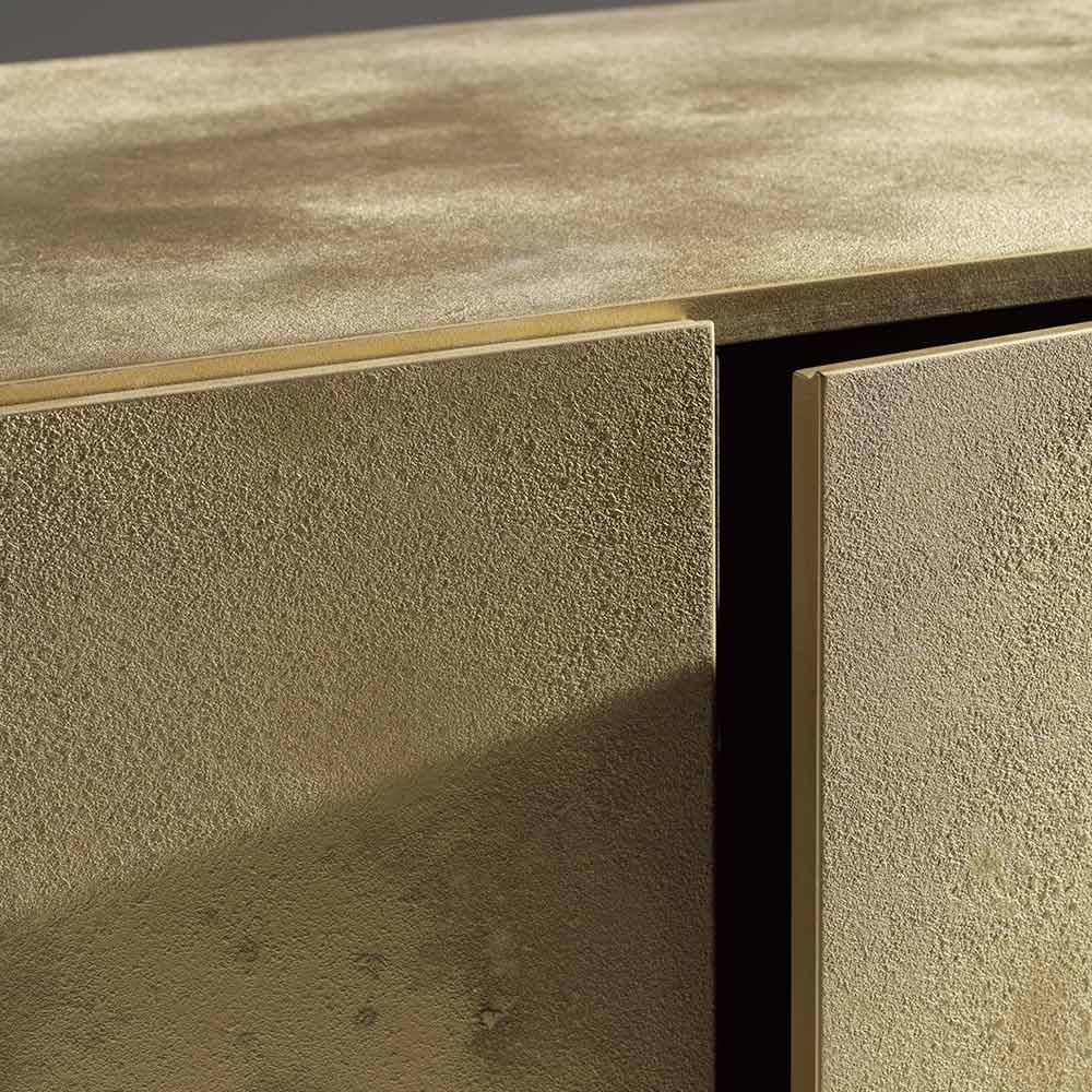 Um aparador com design minimalista e contemporâneo, caracterizado por volumes puros e superfícies texturizadas sofisticadas. Uma peça marcante e funcional, ideal para salas de estar, salas de jantar e espaços comerciais com um toque moderno e elegante.