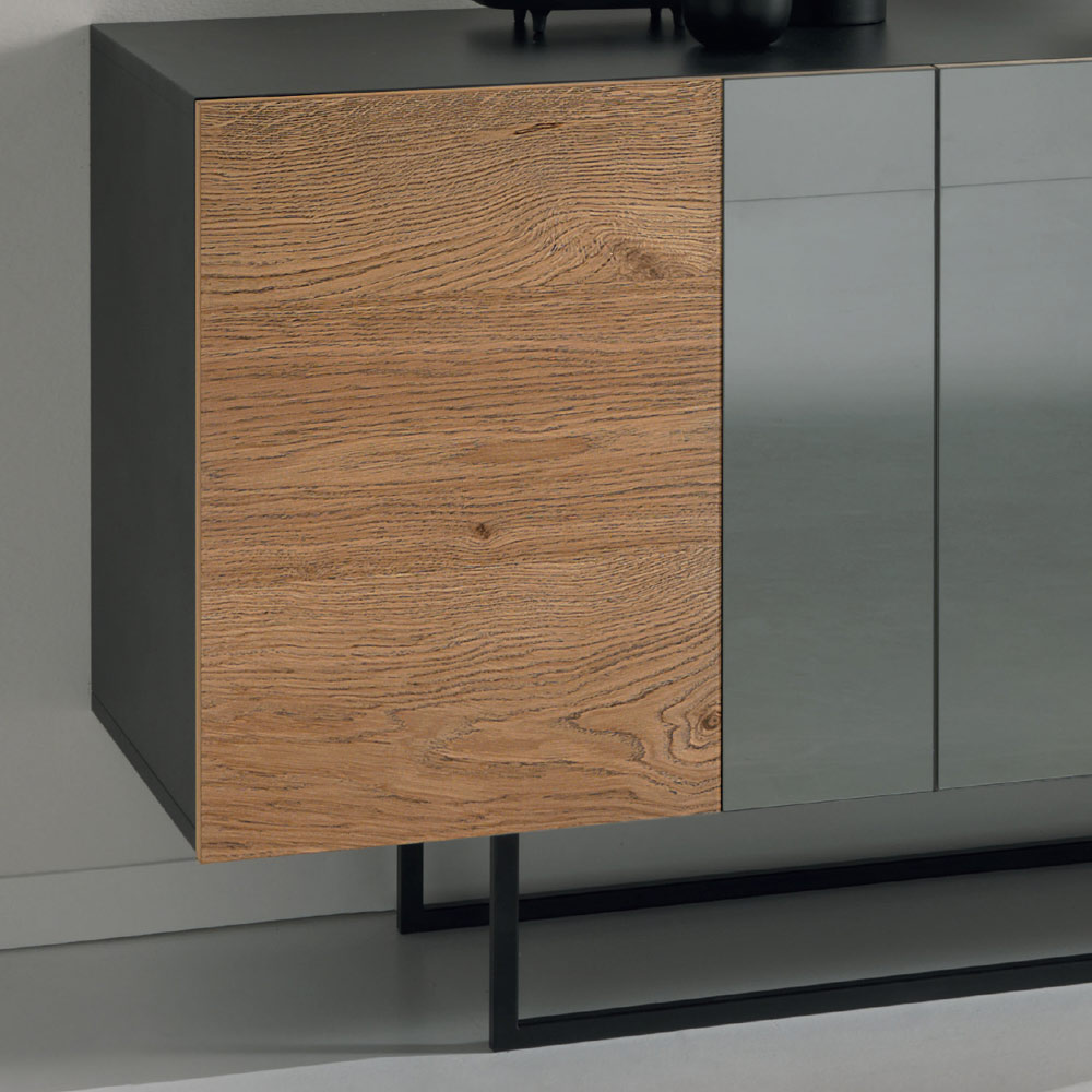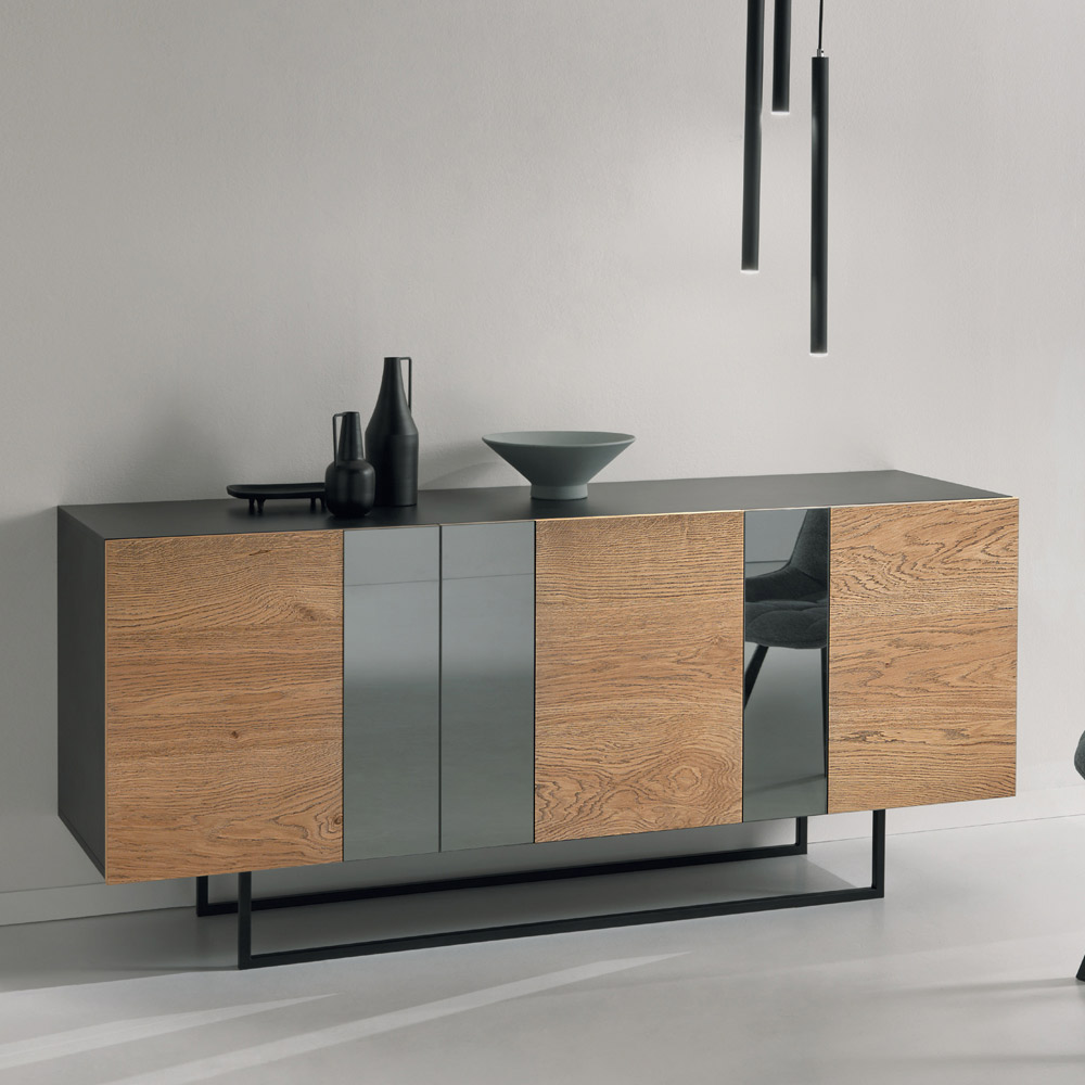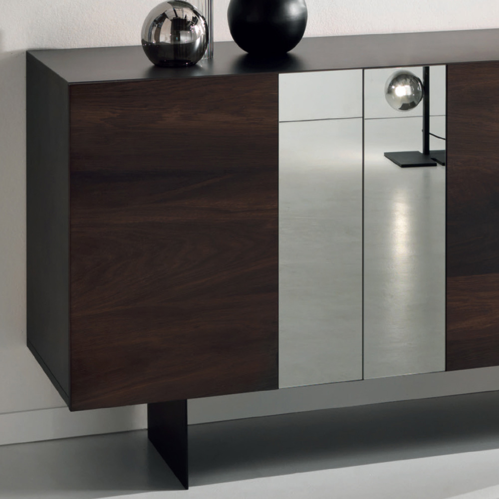 Aparador de sala em melamina com aplicações em espelho fumado Made in Italy.