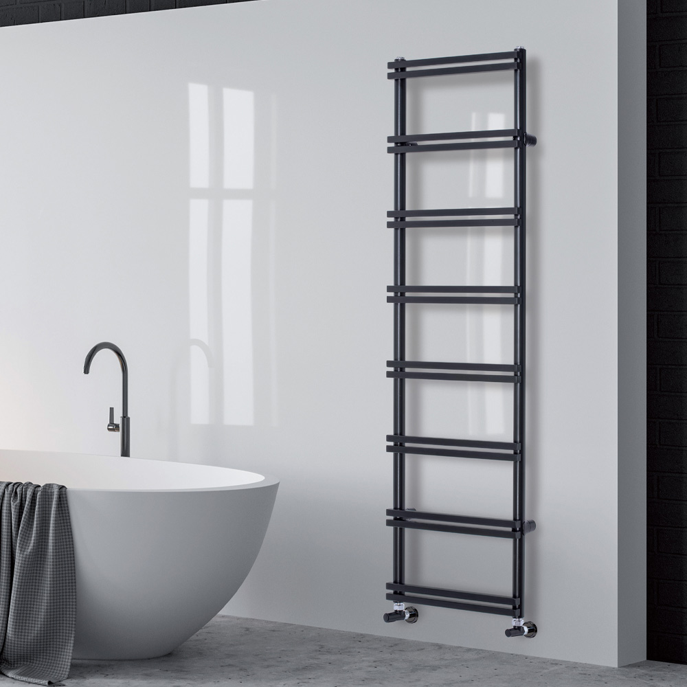 Toalheiro aquecido em aço carbono misto, fabricado na Itália.