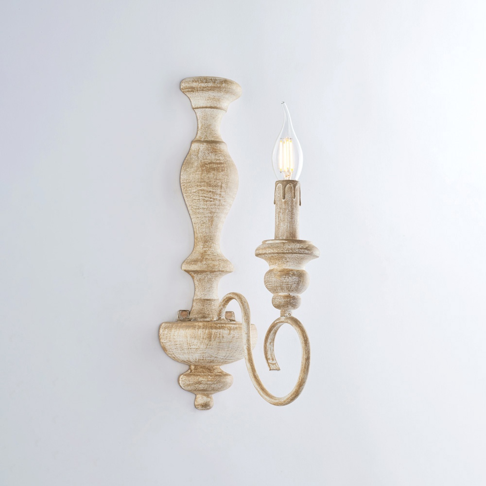 Elegante e harmoniosa, esta luminária de parede artesanal em madeira e ferro interpreta com requinte o estilo shabby chic , combinando formas clássicas e acabamentos delicados. A estrutura esbelta, realçada pelos braços sinuosos e pelas luzes em formato de vela , confere às paredes uma leveza e elegância atemporal, ideal para criar ambientes acolhedores e convidativos.