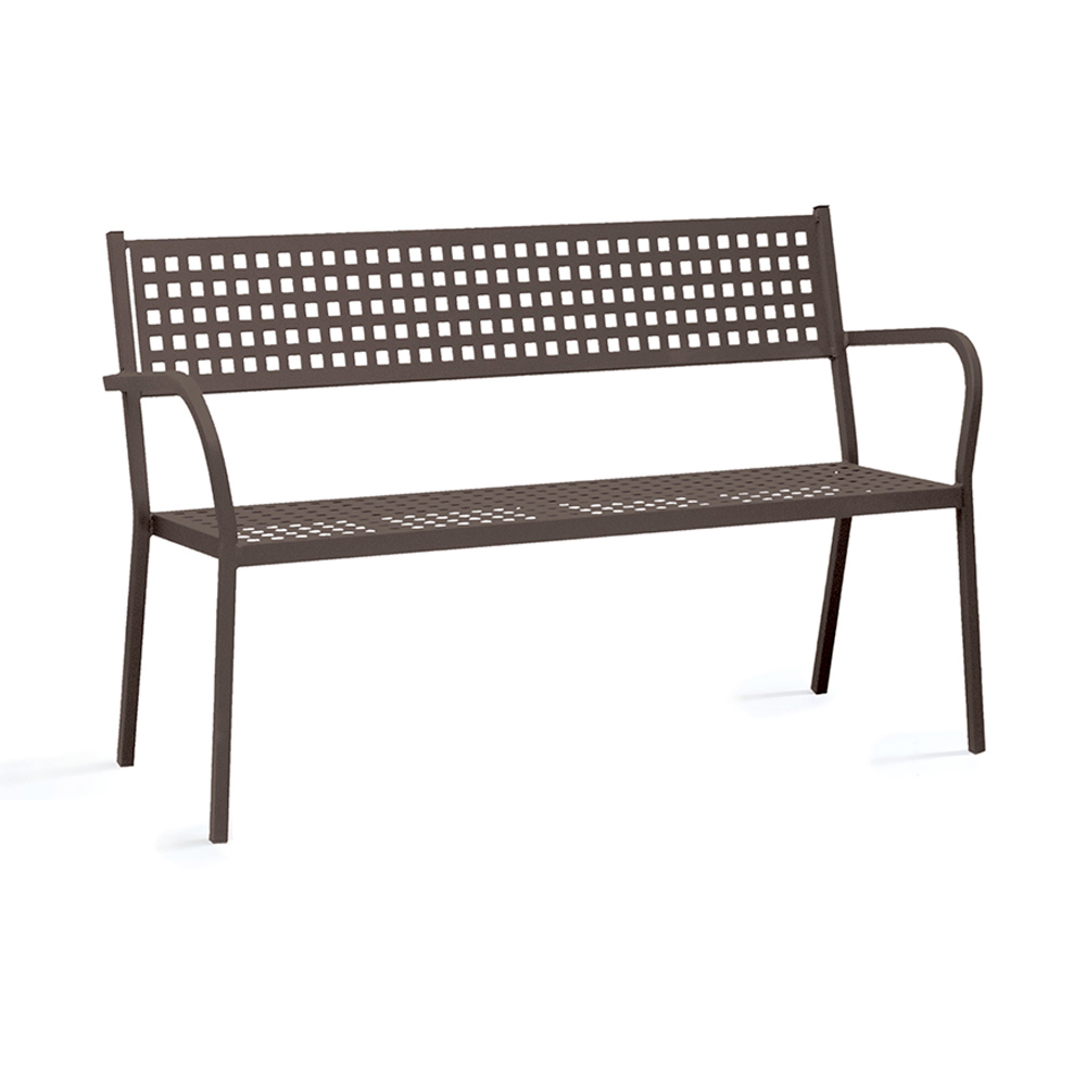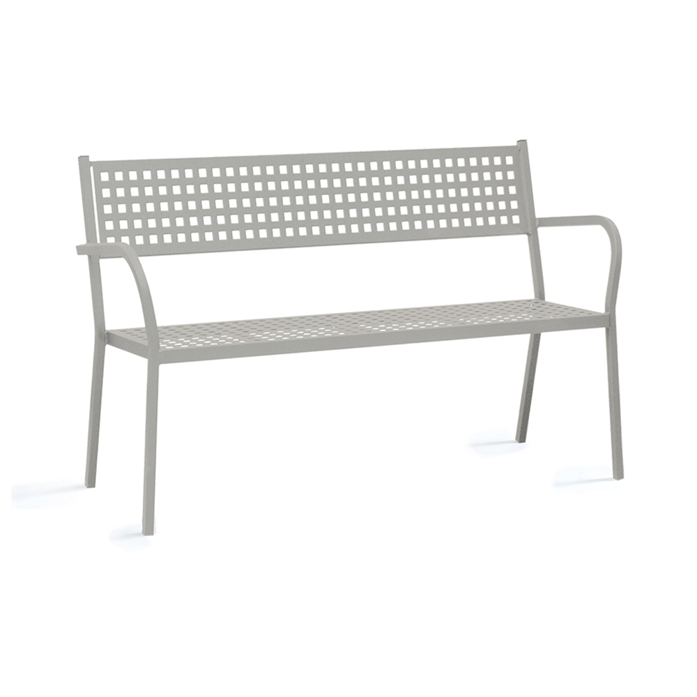 Banco de jardim confortável, inteiramente fabricado na Itália em aço galvanizado . O processamento específico e inovador do material permite que o móvel se adapte a qualquer espaço externo, tornando-o
