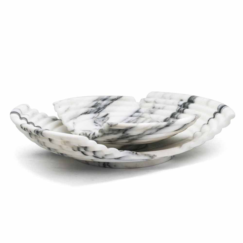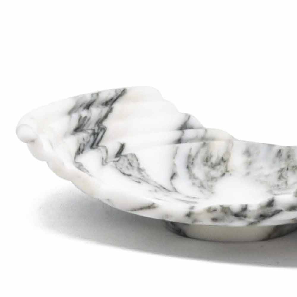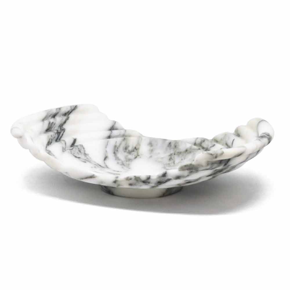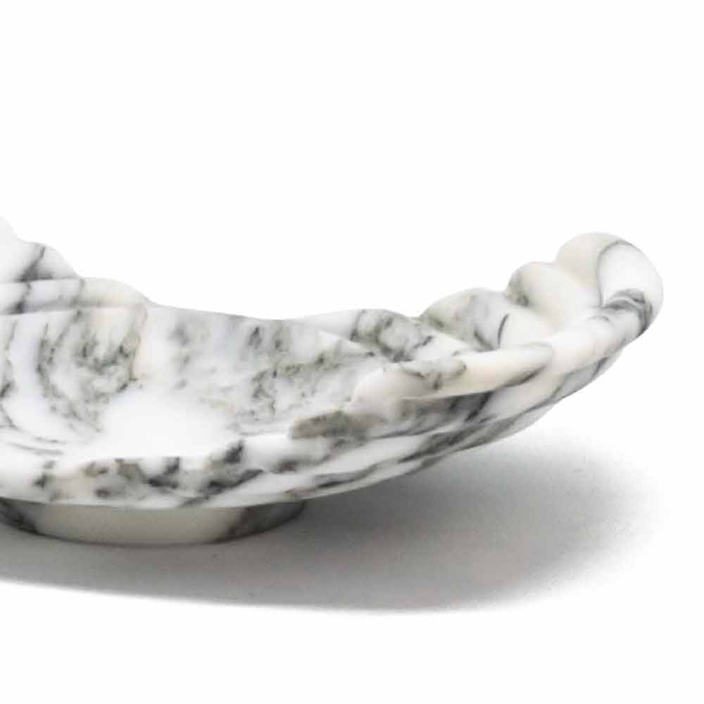 Bandeja decorativa feita inteiramente de mármore arabescos, uma variedade de mármore branco fino com veios cinza escuro, chamados "arabescos".