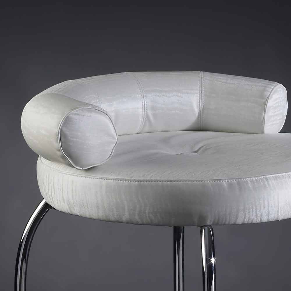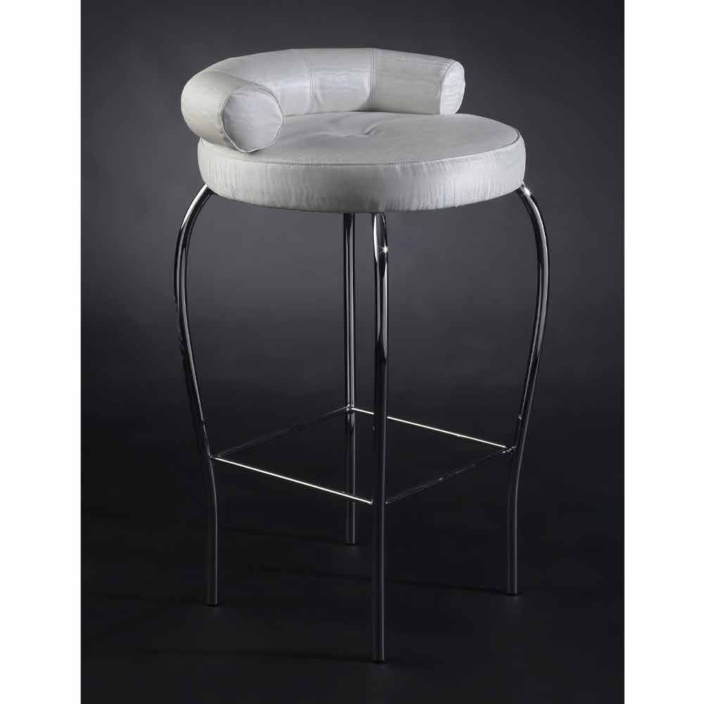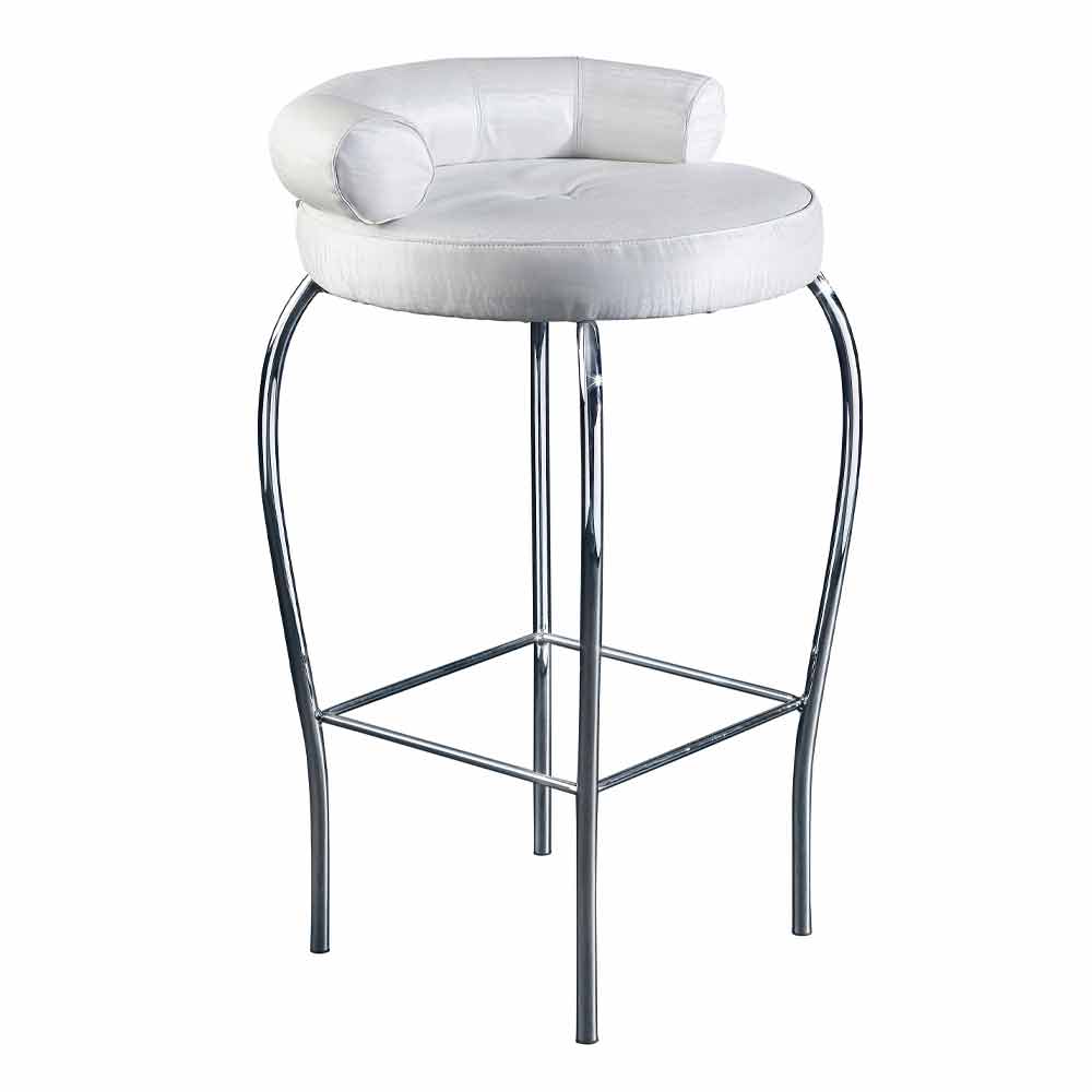 Banqueta alta de aço com assento forrado em precioso tecido Made in Italy.