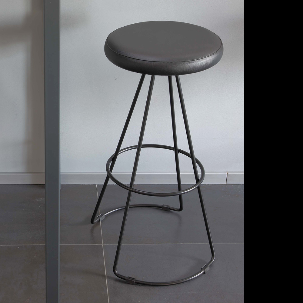 Banqueta para sala em couro ecológico e metal