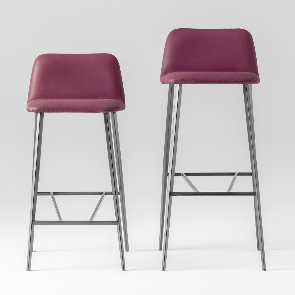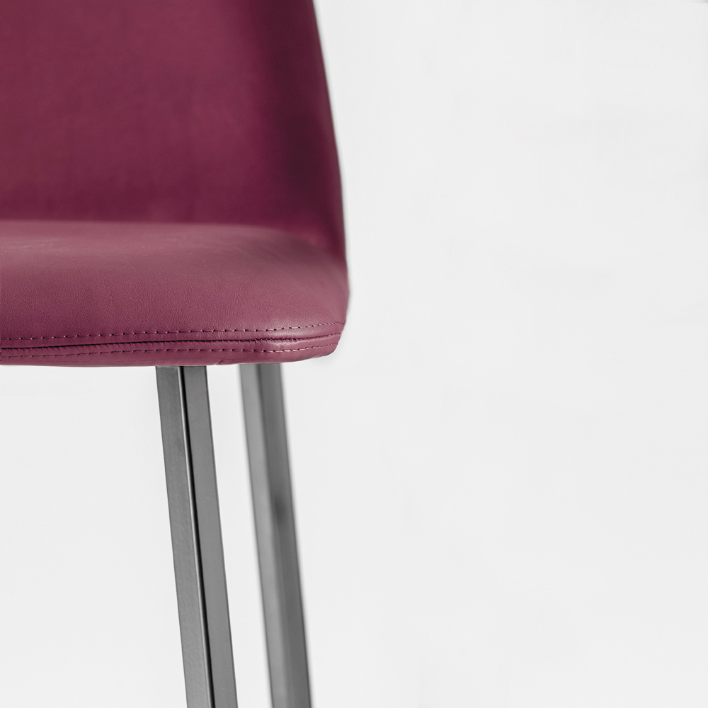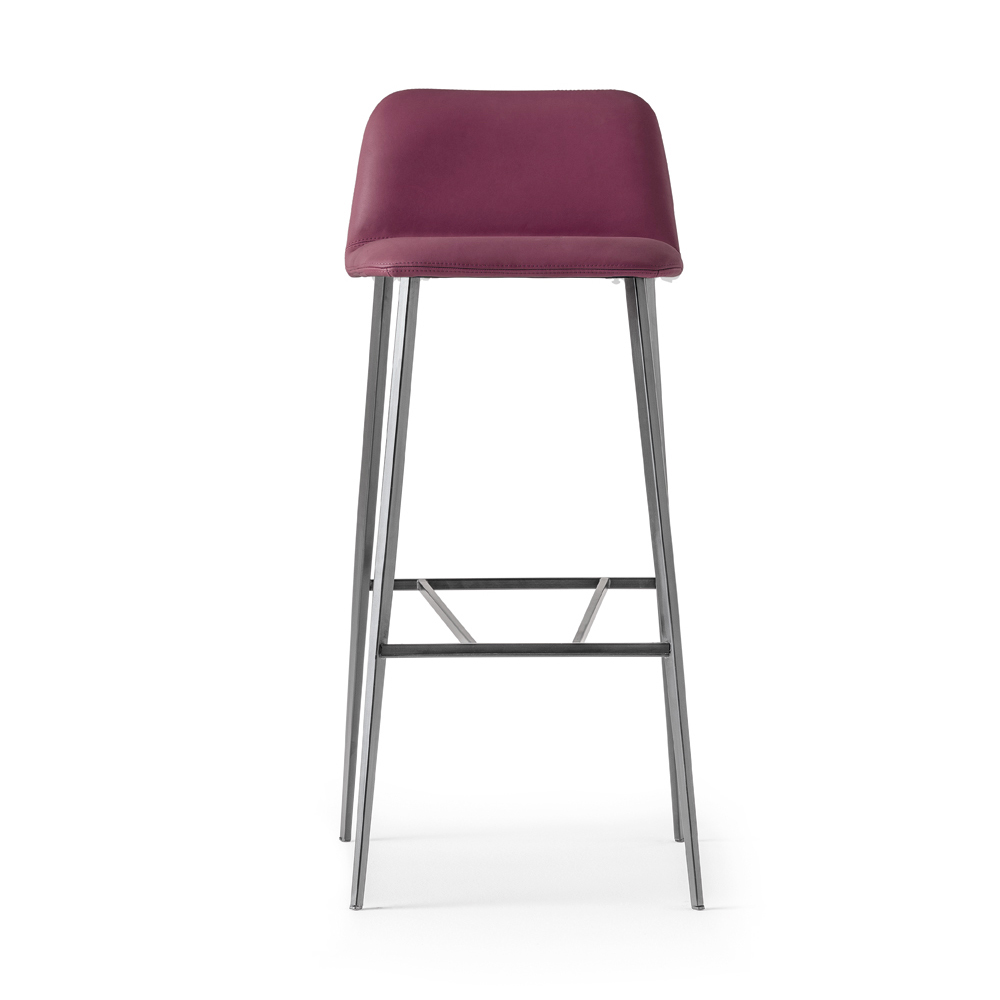 Banqueta alta fabricada na Itália com estrutura em metal pintado com acabamento em antracite de chumbo e concha acolchoada revestida em couro . Uma cadeira de traços simples mas originais caracterizados pela funcionalidade e beleza incomparáveis, ideal para personalizar e tornar únicos o mobiliário de cozinhas ou ambientes de contratação, onde se criam um ambiente requintado e uma harmonia maravilhosa entre estilos. Graças também à opção de utilizar couro para o seu estofamento, este banco tem uma alma particularmente fascinante que lhe confere um design sóbrio, discreto e elegante.