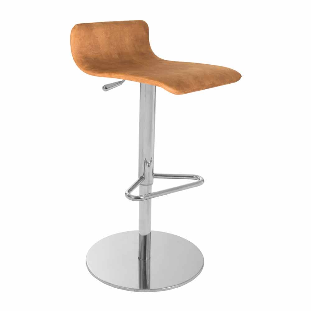 - base redonda em acabamento cromado e assento coberto em econabuk marrom (material semelhante a pele de camurça, muito macio ao toque)