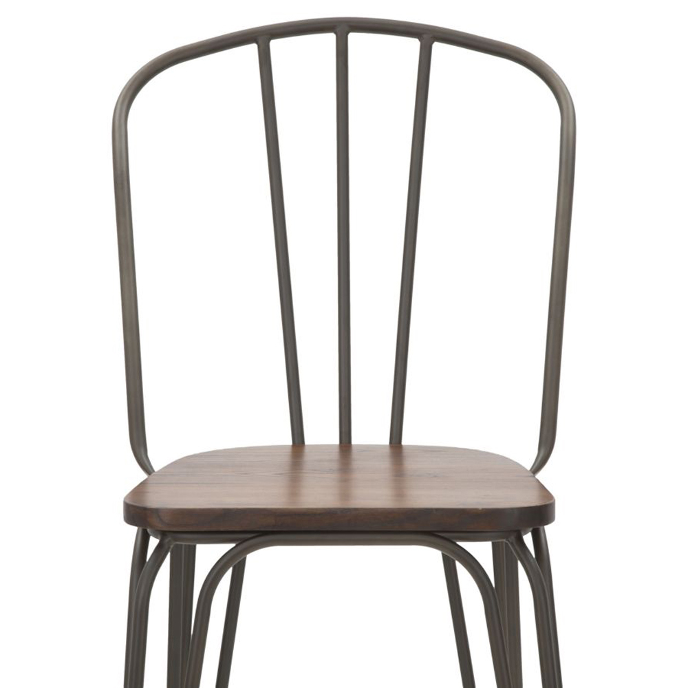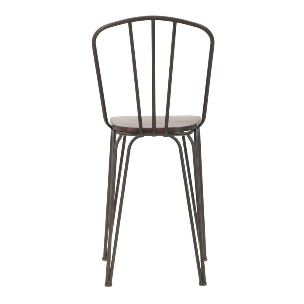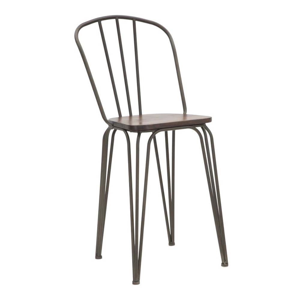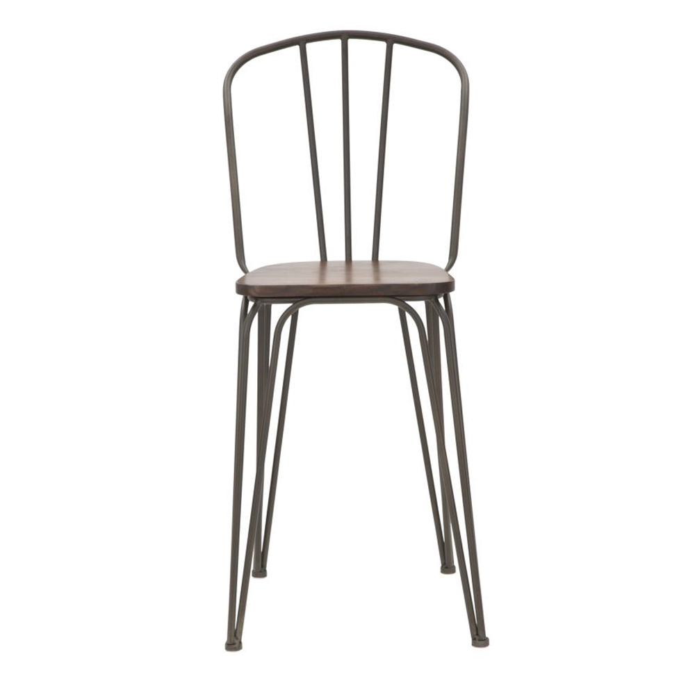 Banqueta em ferro e madeira com design estilo industrial.