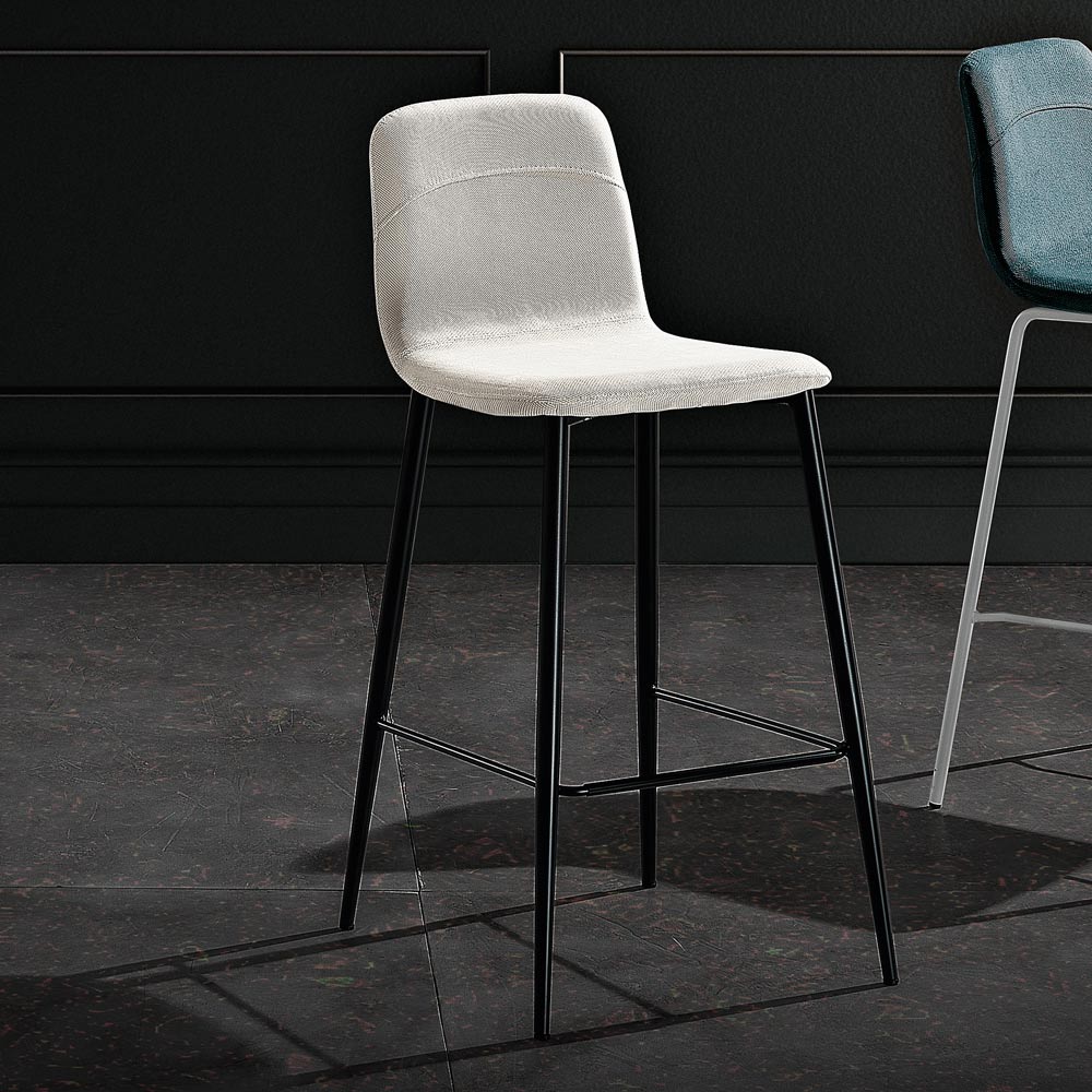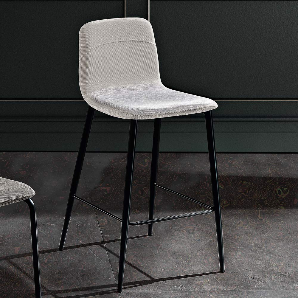 Banco de cozinha com assento revestido em tecido e estrutura metálica com tubo redondo (diâmetro 16 mm) em acabamento antracite mate RAL 7021 completo com apoio de pés prático, feito na Itália.