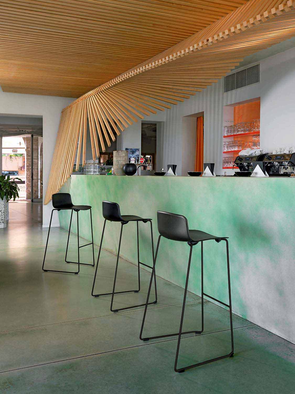 O banco externo Charla é caracterizado por um design minimalista e moderno que se adapta perfeitamente a qualquer estilo de mobiliário, graças à versatilidade da concha de polipropileno disponível em 7 cores diferentes.