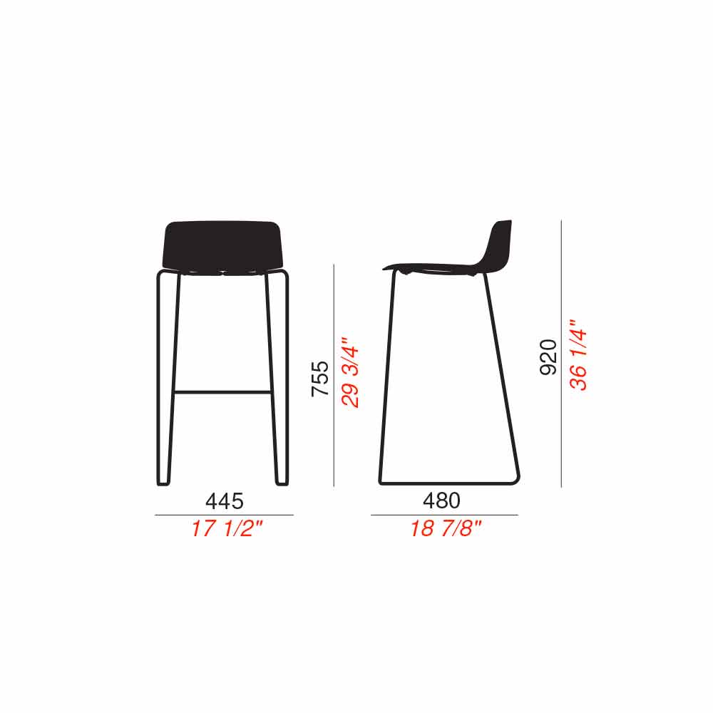 Banqueta empilhável para exterior em metal e polipropileno com encosto Fabricado em Itália, 2 peças.