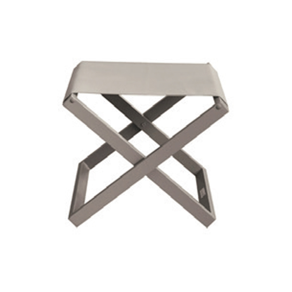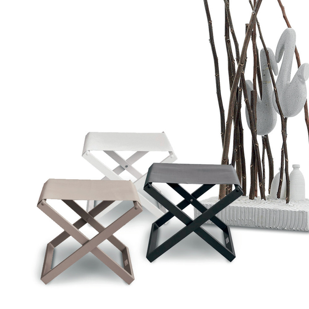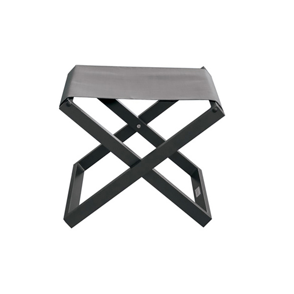 Banco baixo para exterior com estrutura em alumínio lacado a pó e textil.