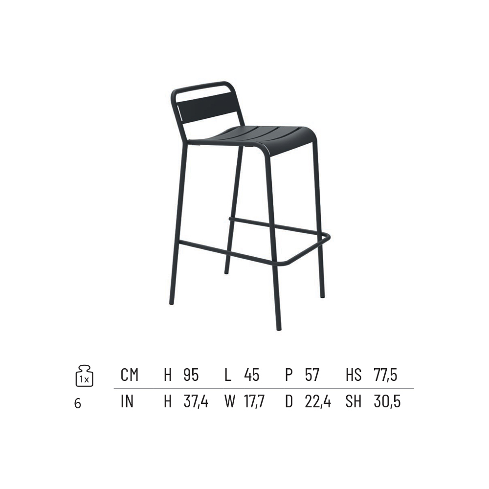Banco empilhável para área externa em ferro galvanizado com revestimento em pó, galvanizado colorido. Fabricado na Itália.