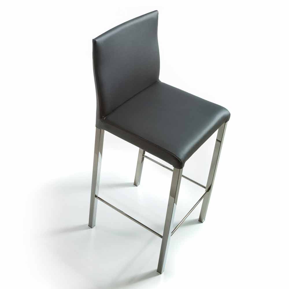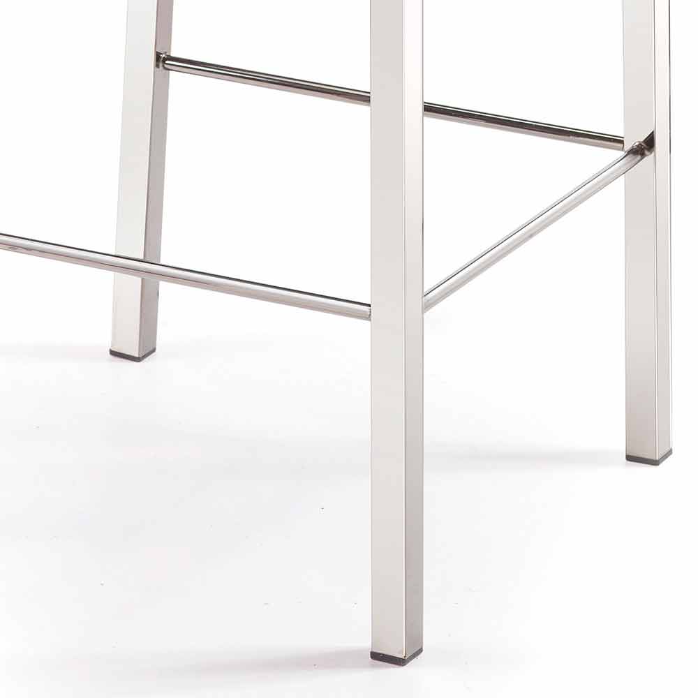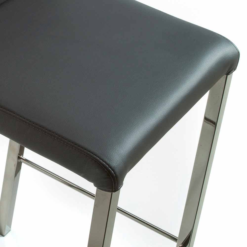 - perna quadrada em acabamento cromado com assento revestido em argila de couro ecológico (material constituído por uma base de algodão e uma camada de material sintético resistente ao atrito e desgaste)