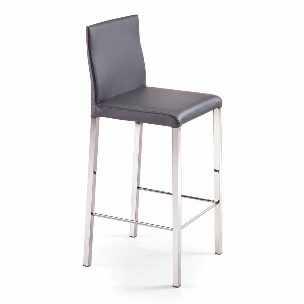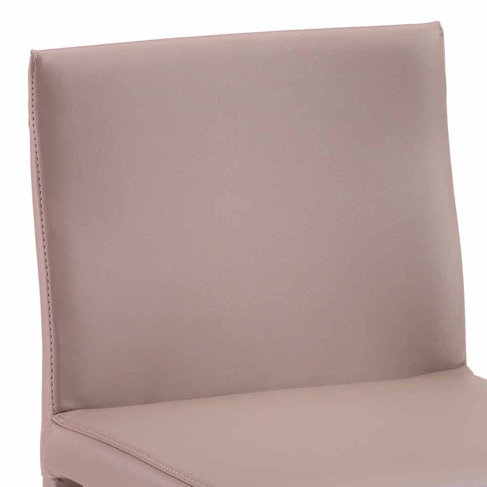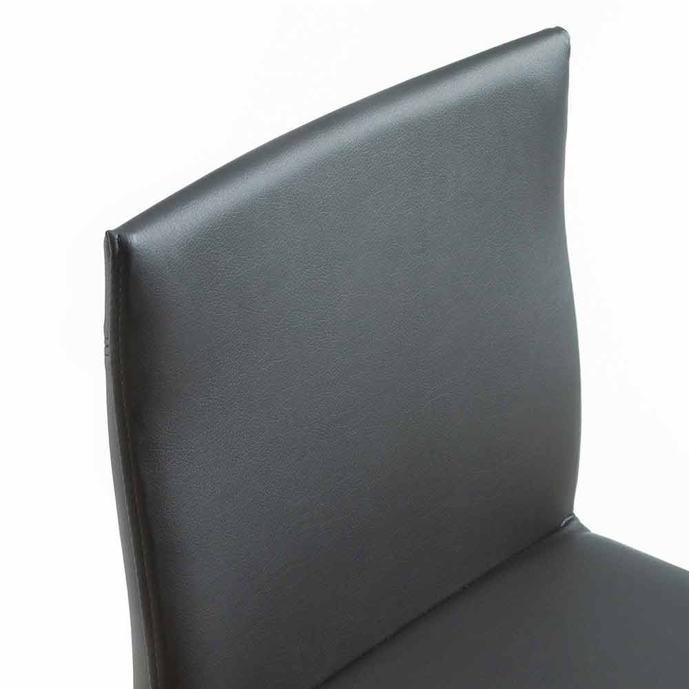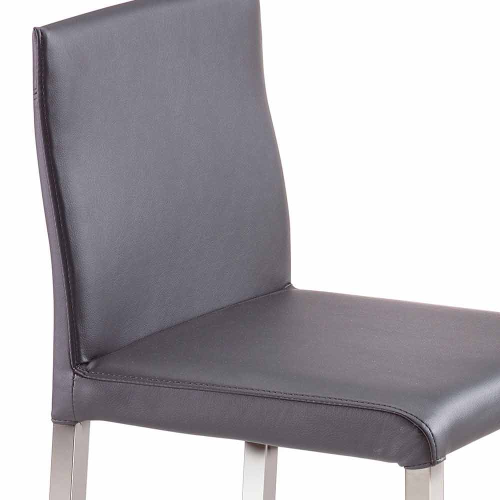 - perna quadrada em acabamento cromado com assento revestido em argila de couro ecológico (material constituído por uma base de algodão e uma camada de material sintético resistente ao atrito e desgaste)