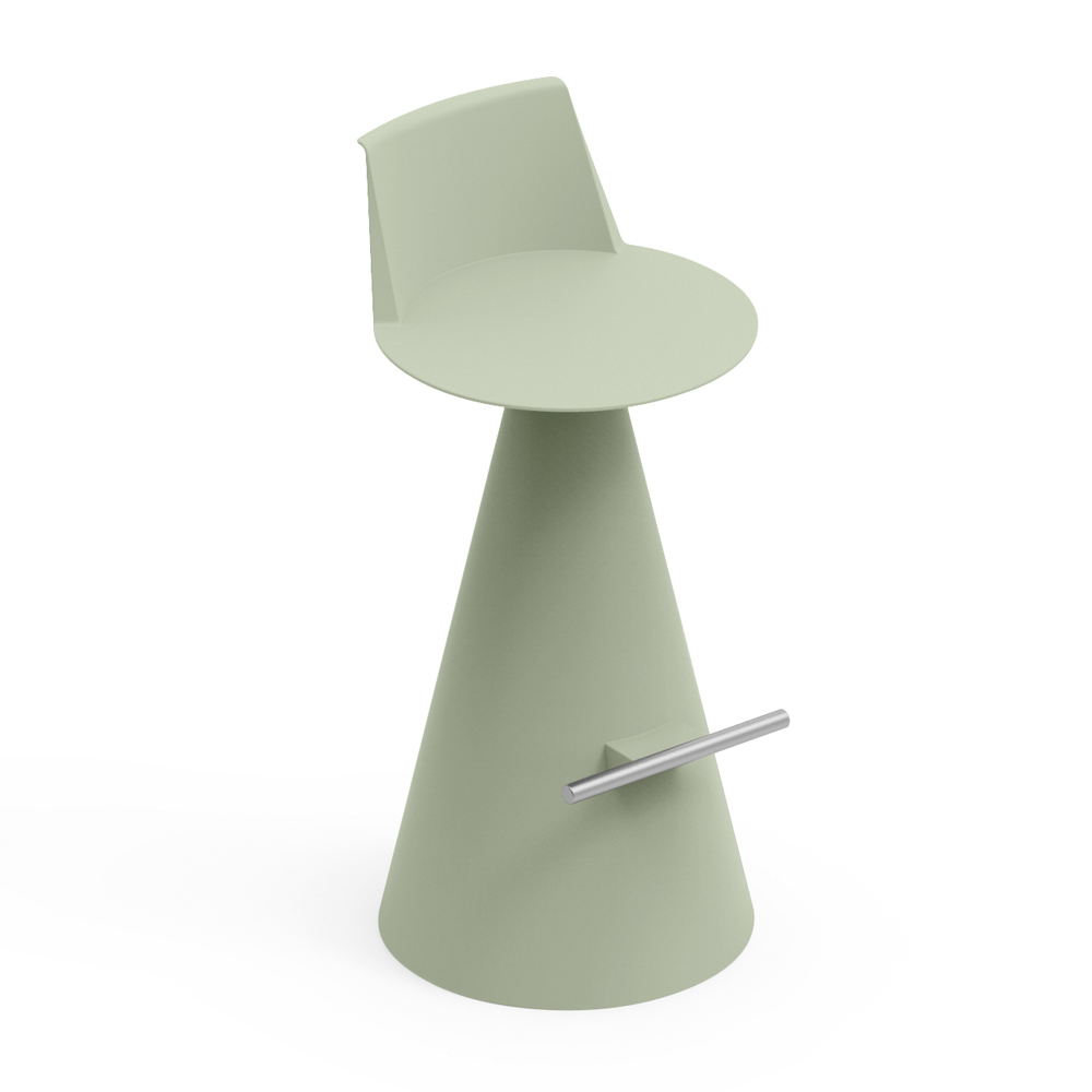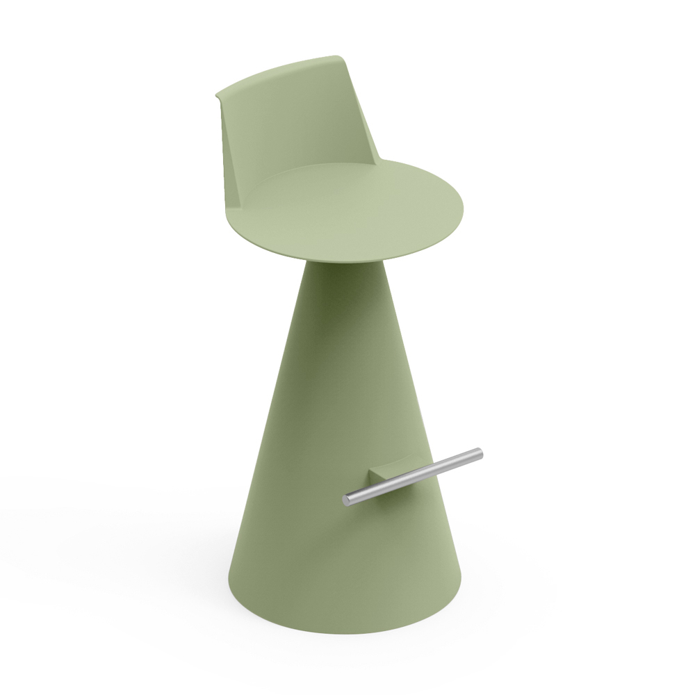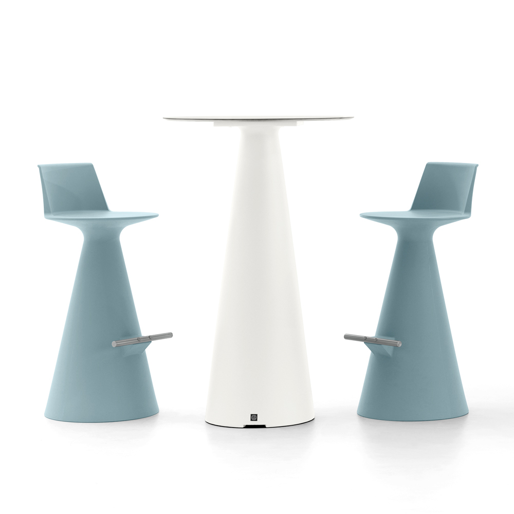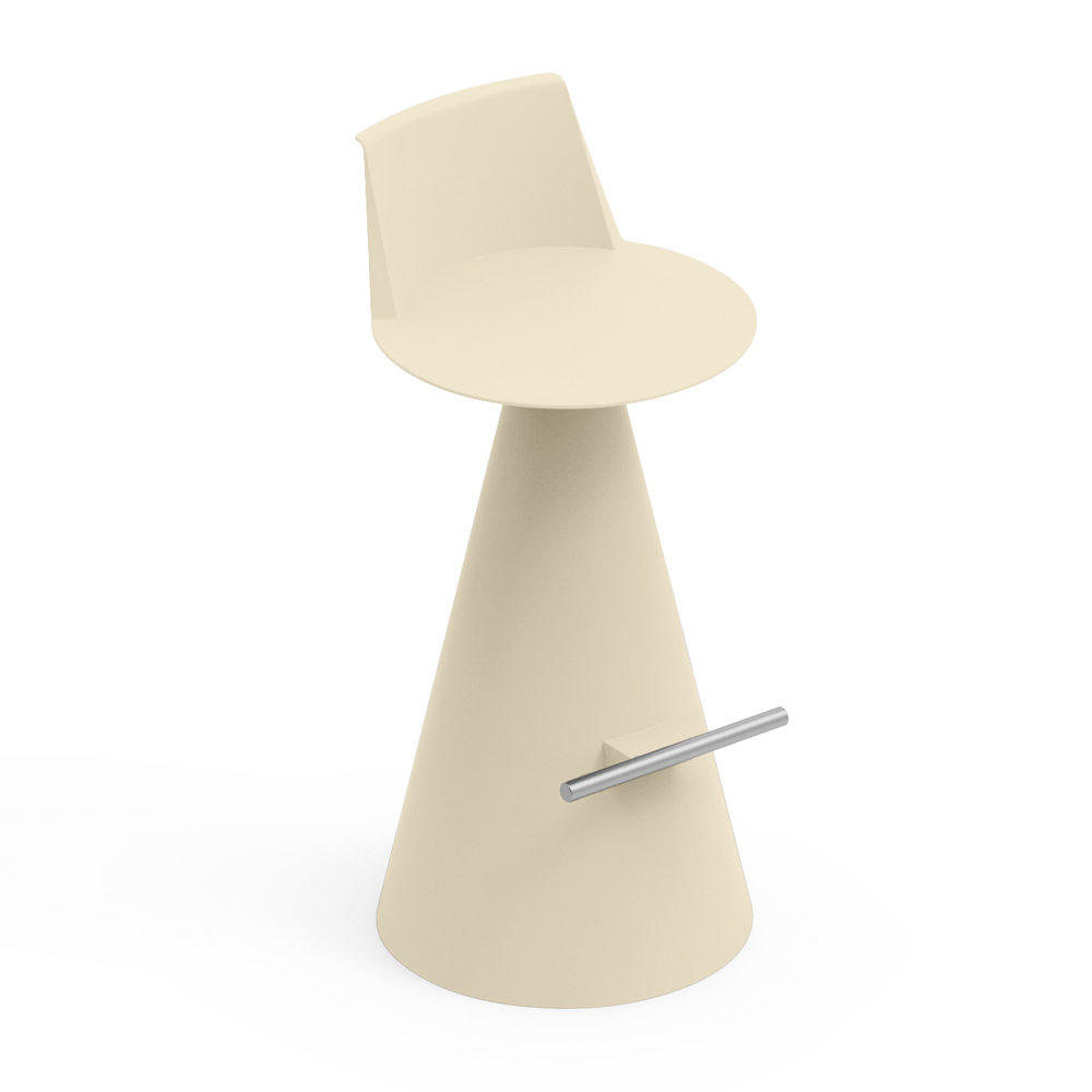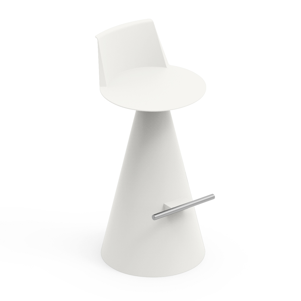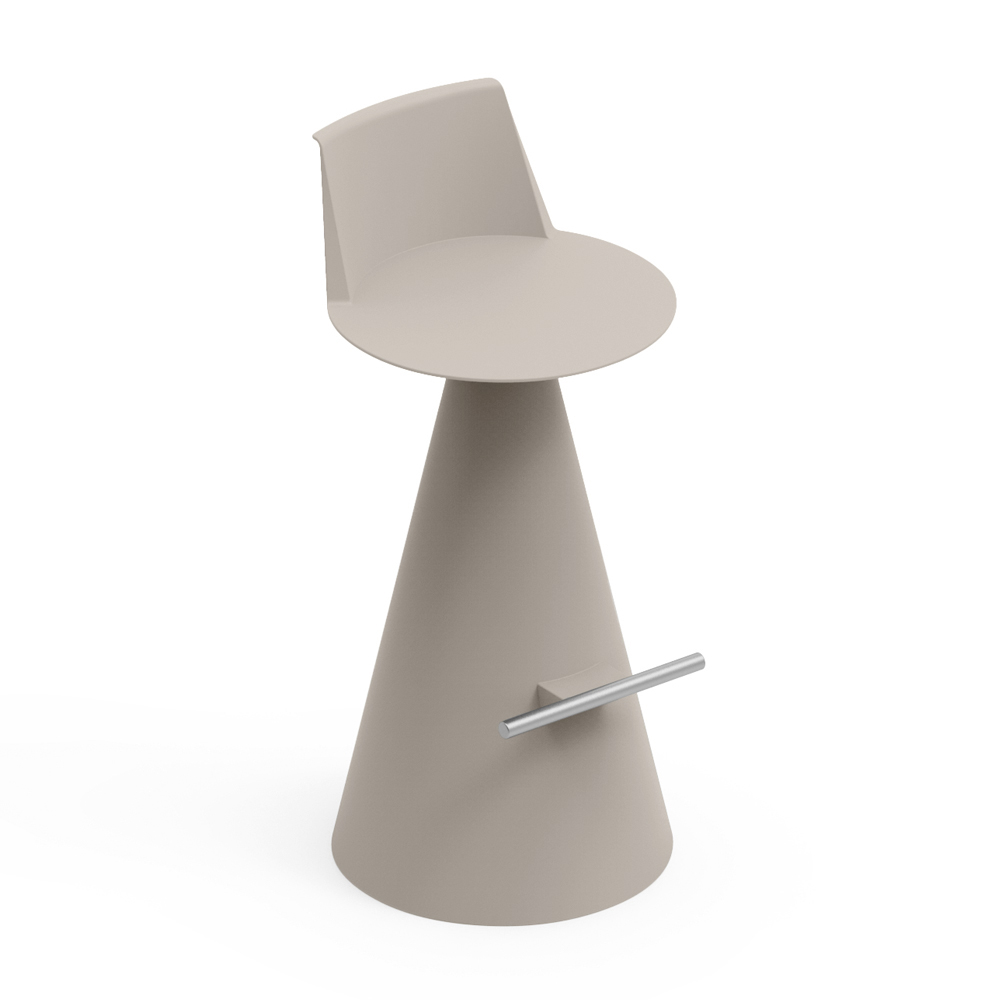 Este banco moderno destaca-se pelo seu design único e inovador, combinando forma e função de uma forma esteticamente agradável e prática. A base cónica expande-se para cima num assento confortável, com um encosto que oferece um assento relaxante e ergonómico .