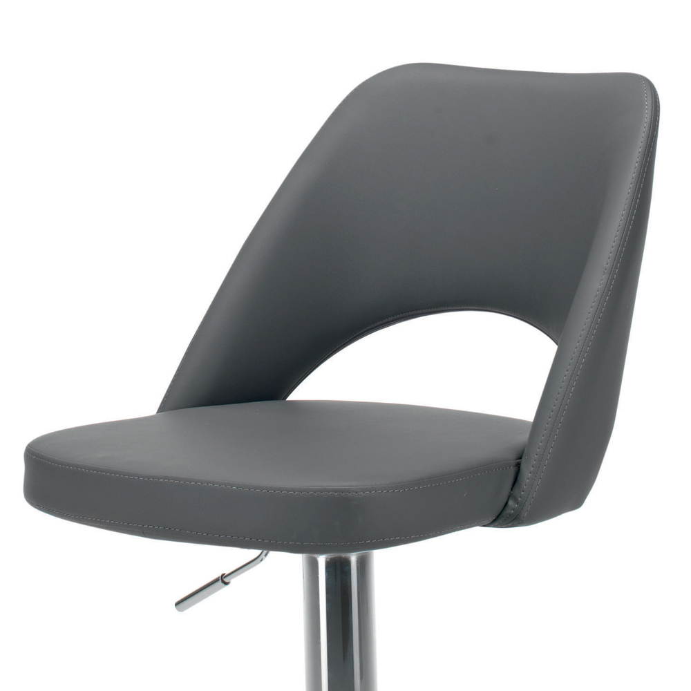 Banqueta alta em aço cromado com assento revestido em couro ecológico Fabricado na Itália.