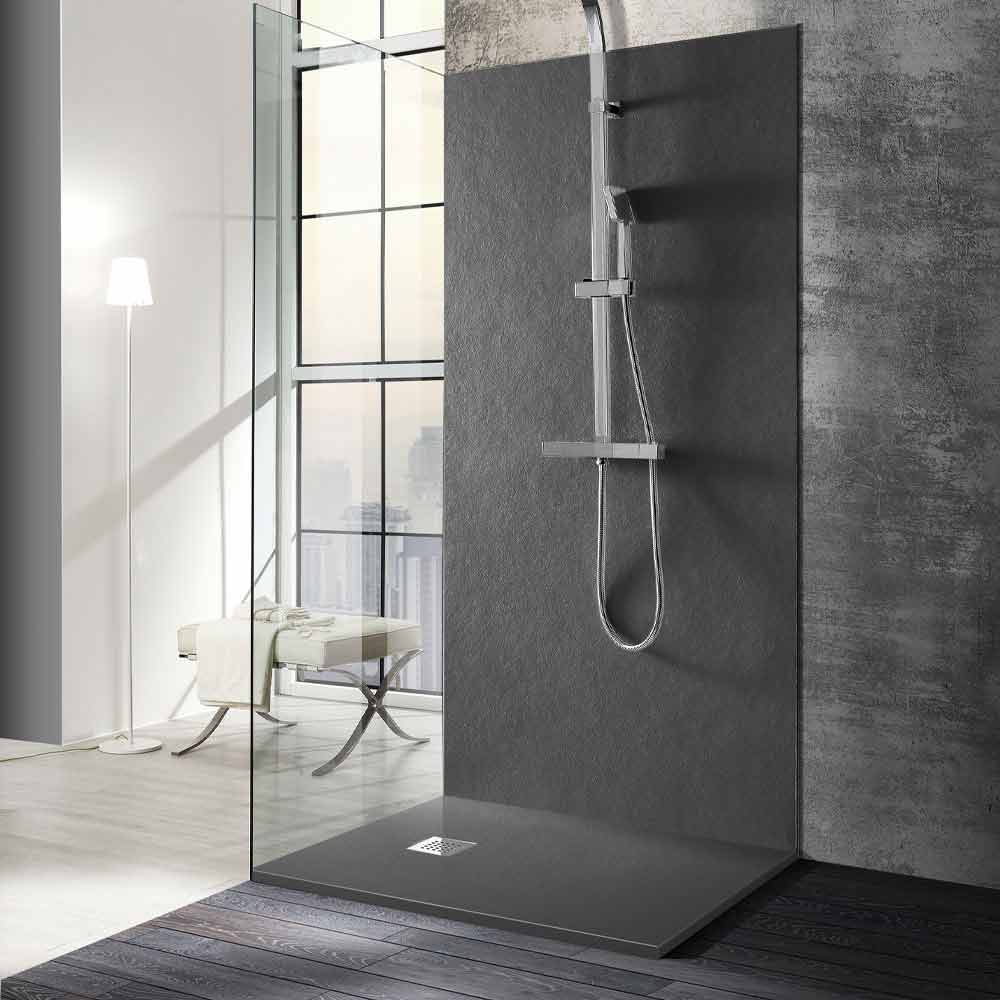 Base de duche moderna em resina 100x70 com grelha de aço.