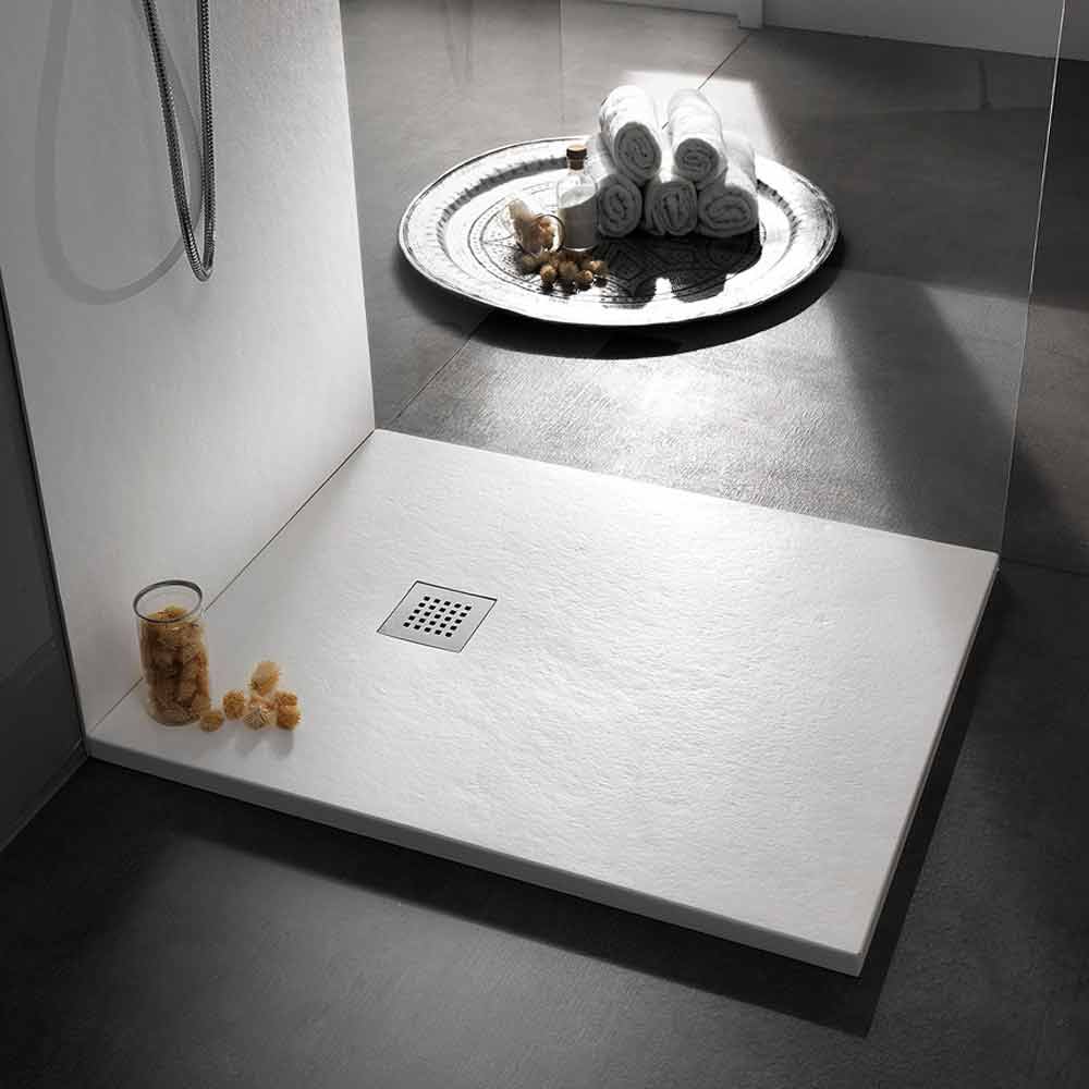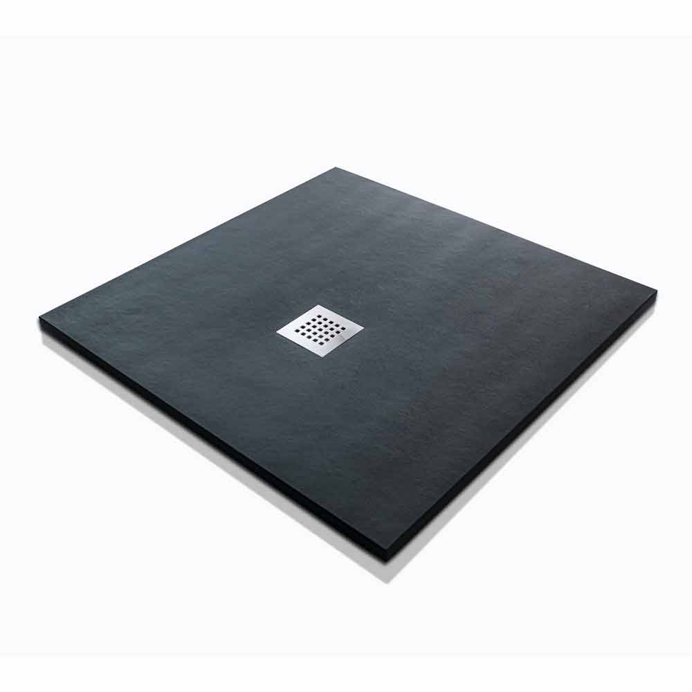 Base de duche quadrada moderna 80x80 em resina de efeito pedra e aço.