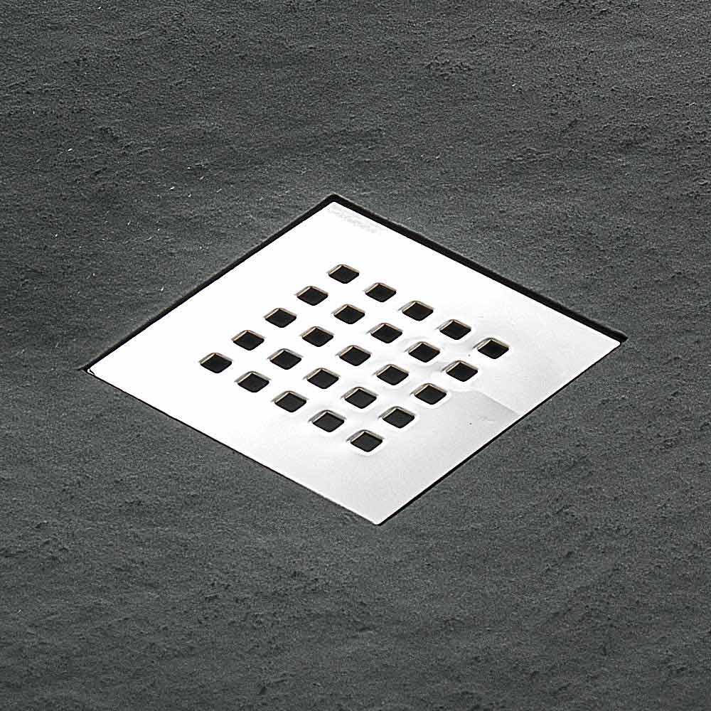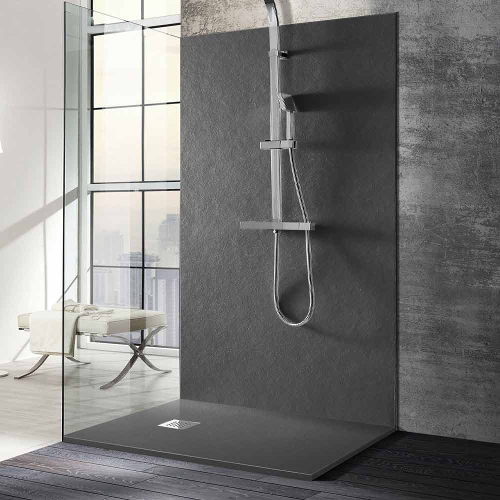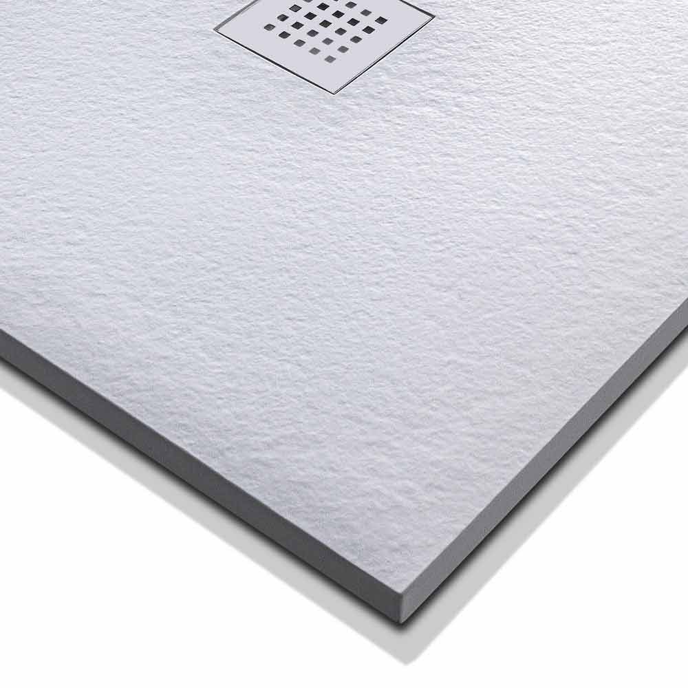 Base de duche moderna 140x90 em resina de efeito pedra com grelha de aço.