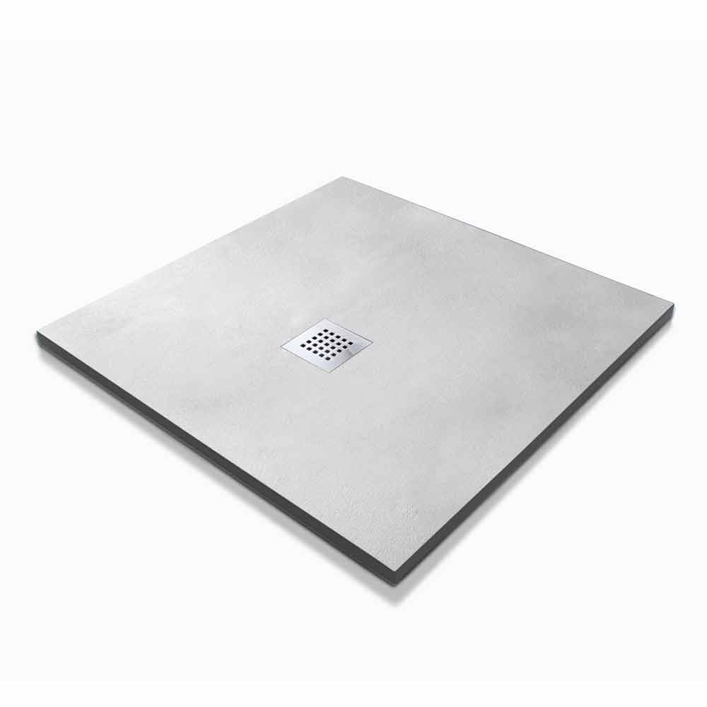 Moderna base de duche quadrada 90x90 em resina com acabamento em efeito betão.