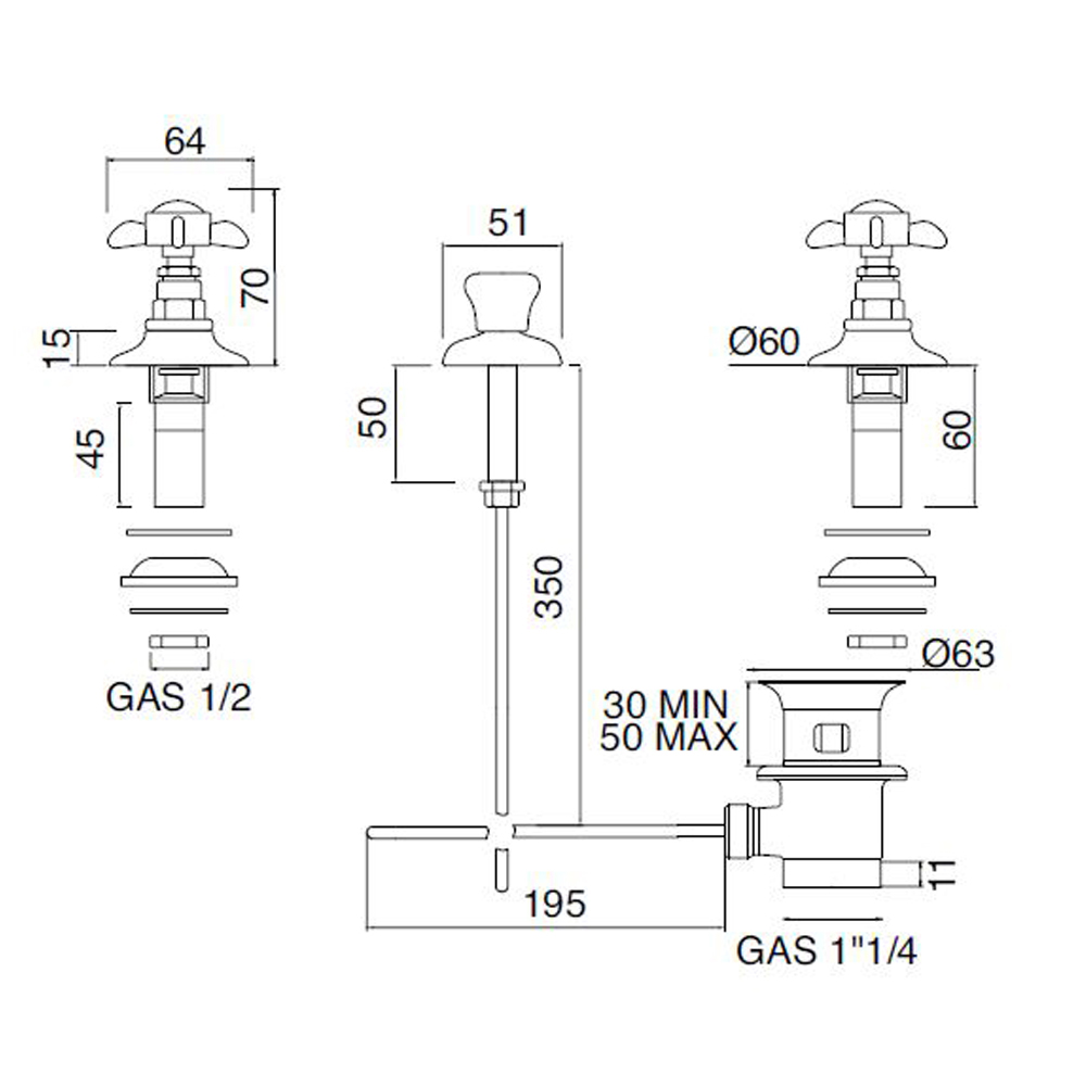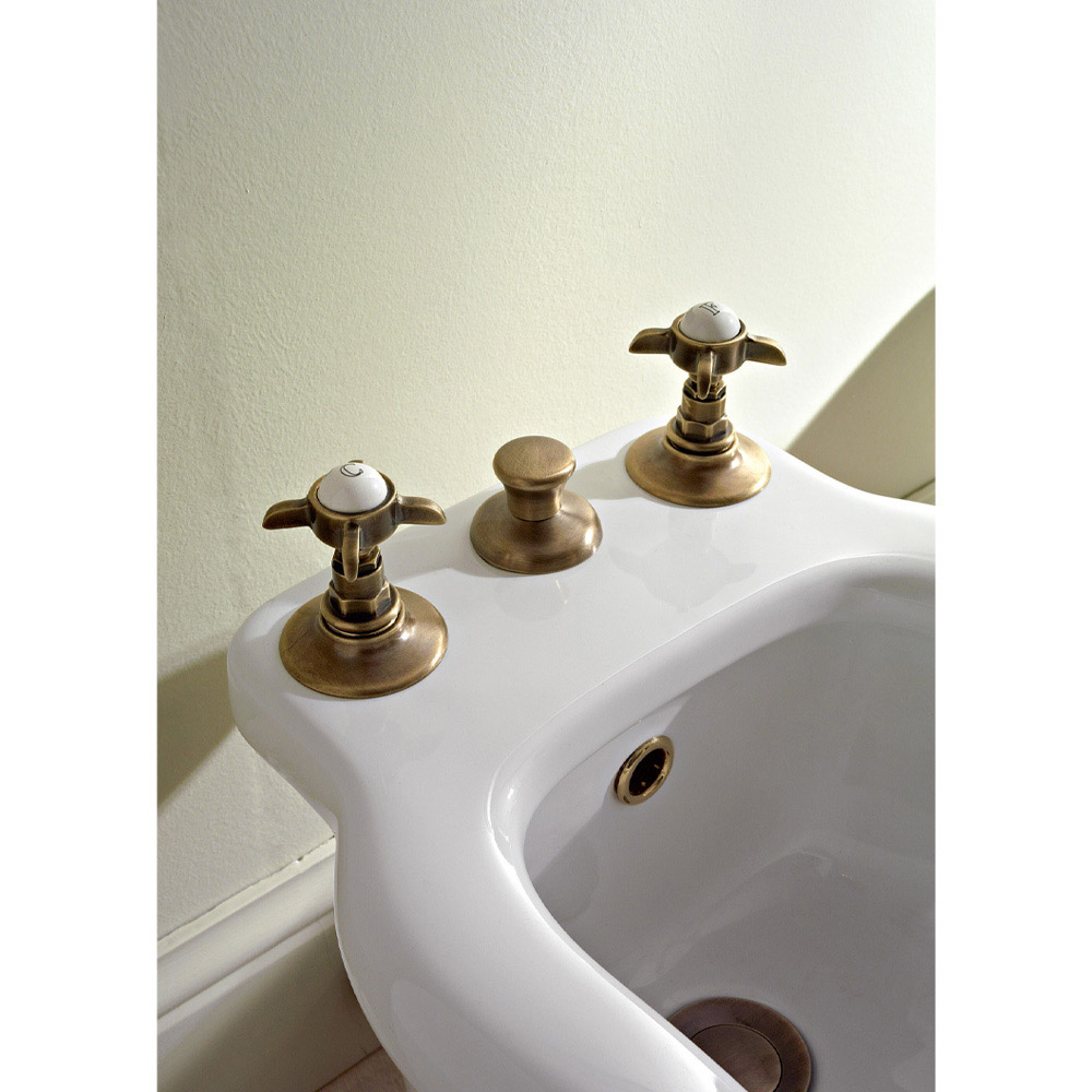 Torneira para bidé de 3 furos com abastecimento interno em latão artesanal e estilo clássico made in Italy.