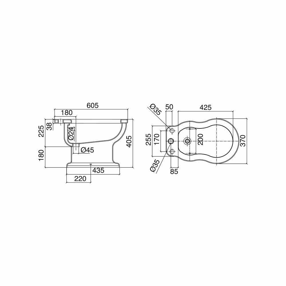 Bidê de design clássico em cerâmica branca Paulina, fabricado na Itália.