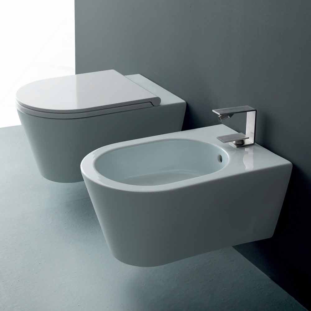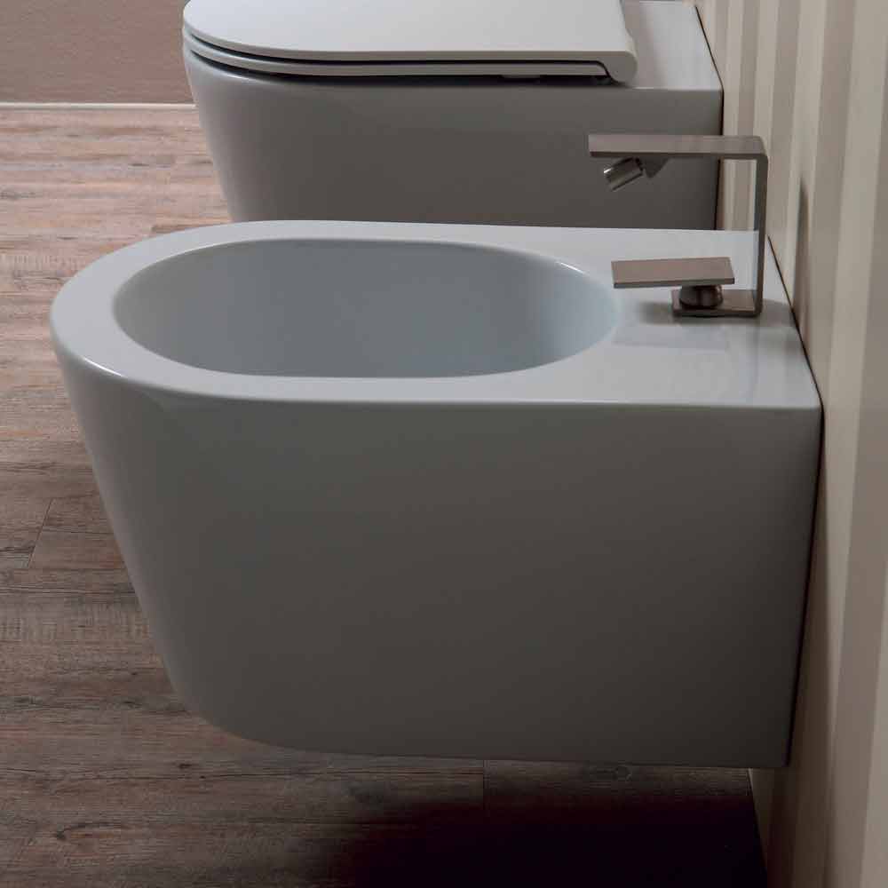 Bidé suspenso de cerâmica de design Sun Round 57x37cm, fabricado na Itália