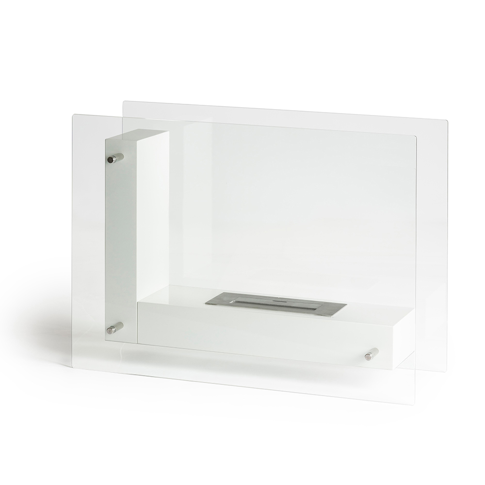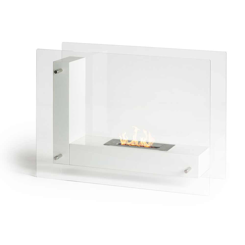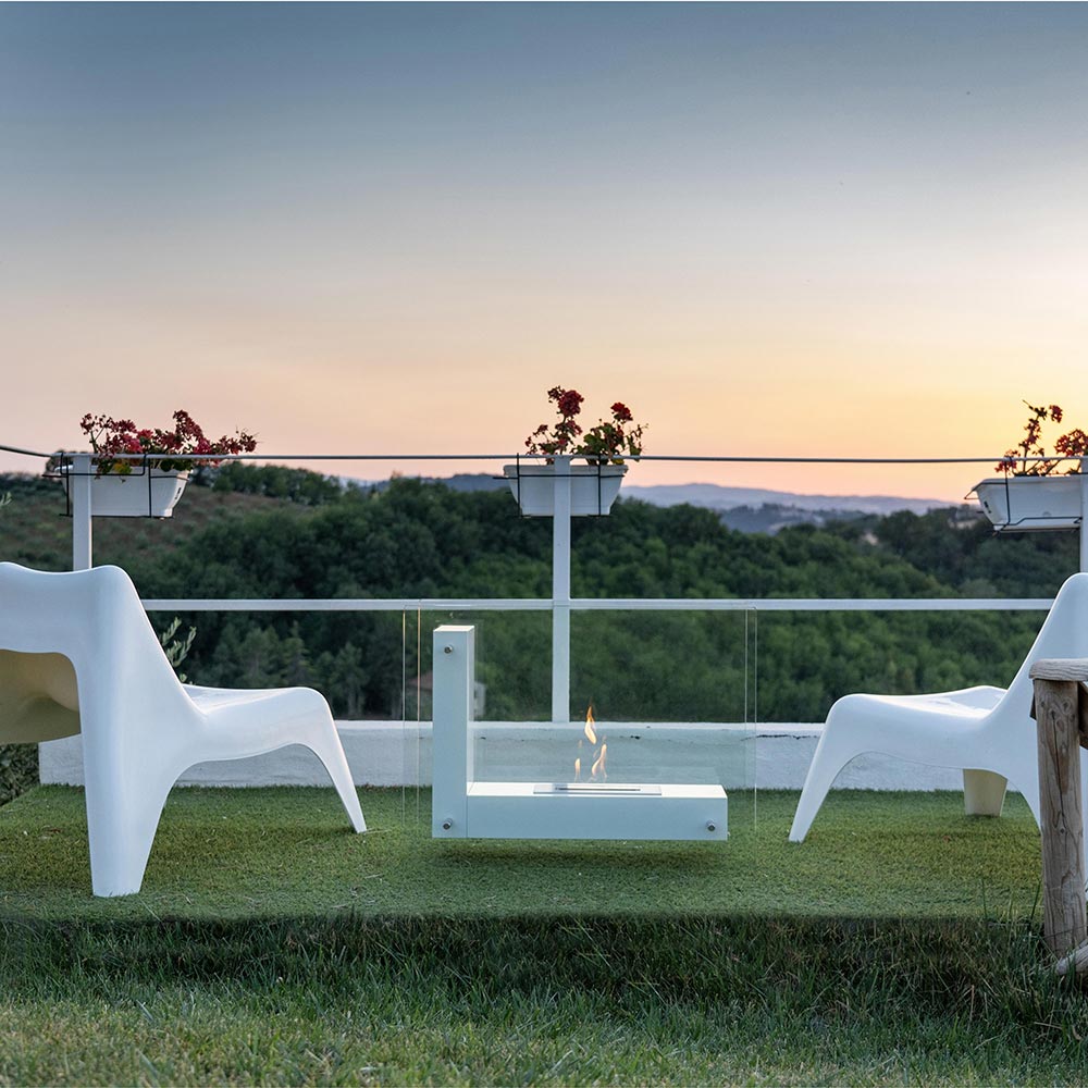 Bio-lareira de piso para uso interno ou externo em metal pintado de branco e vidro temperado transparente útil para proteger a chama de qualquer rajada de vento, destacando-a. Completo com ferramenta de controle de chama e manual de instruções. Um acessório de mobiliário elegante e funcional, ideal para aquecer ambientes domésticos e contratuais, tanto internos quanto externos. Seu estilo minimalista e refinado o torna também apreciável quando desligado, pois completa o espaço circundante através de uma toque de personalidade e requinte .