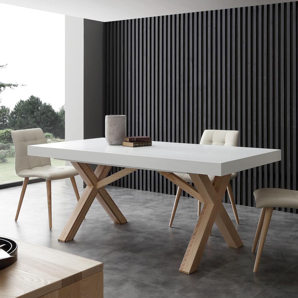 mesa de jantar extensível Grotta; delineada por uma combinação perfeita de