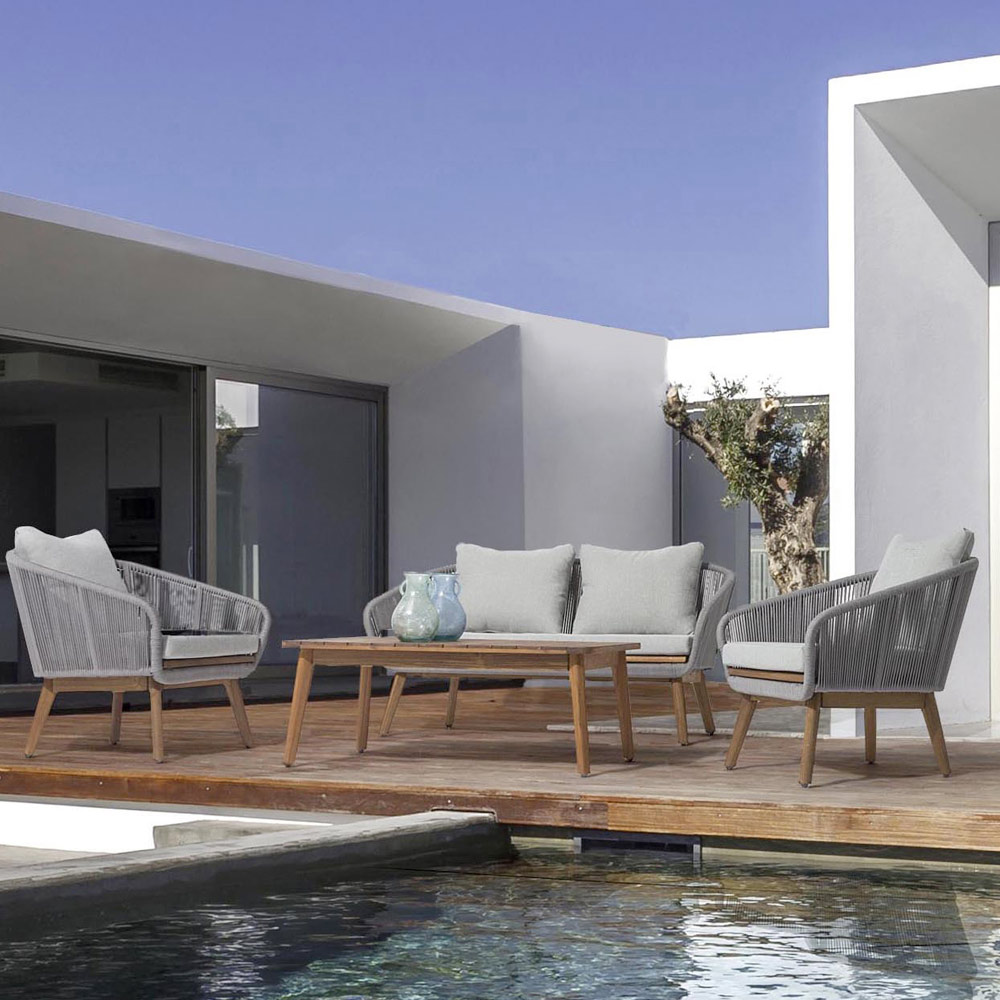 Modular e de balanço sofás feitos de madeira e alumínio para um estilo clássico atemporal, poltronas feitas de rattan no chique gasto ou estilo étnico para dar seus convidados assentos de design confortáveis e café mesas em aço ou madeira de bambu para combinar com os bancos para criar uma sala de jardim perfeito para hospedar seus amigos e se perder em longas conversas.