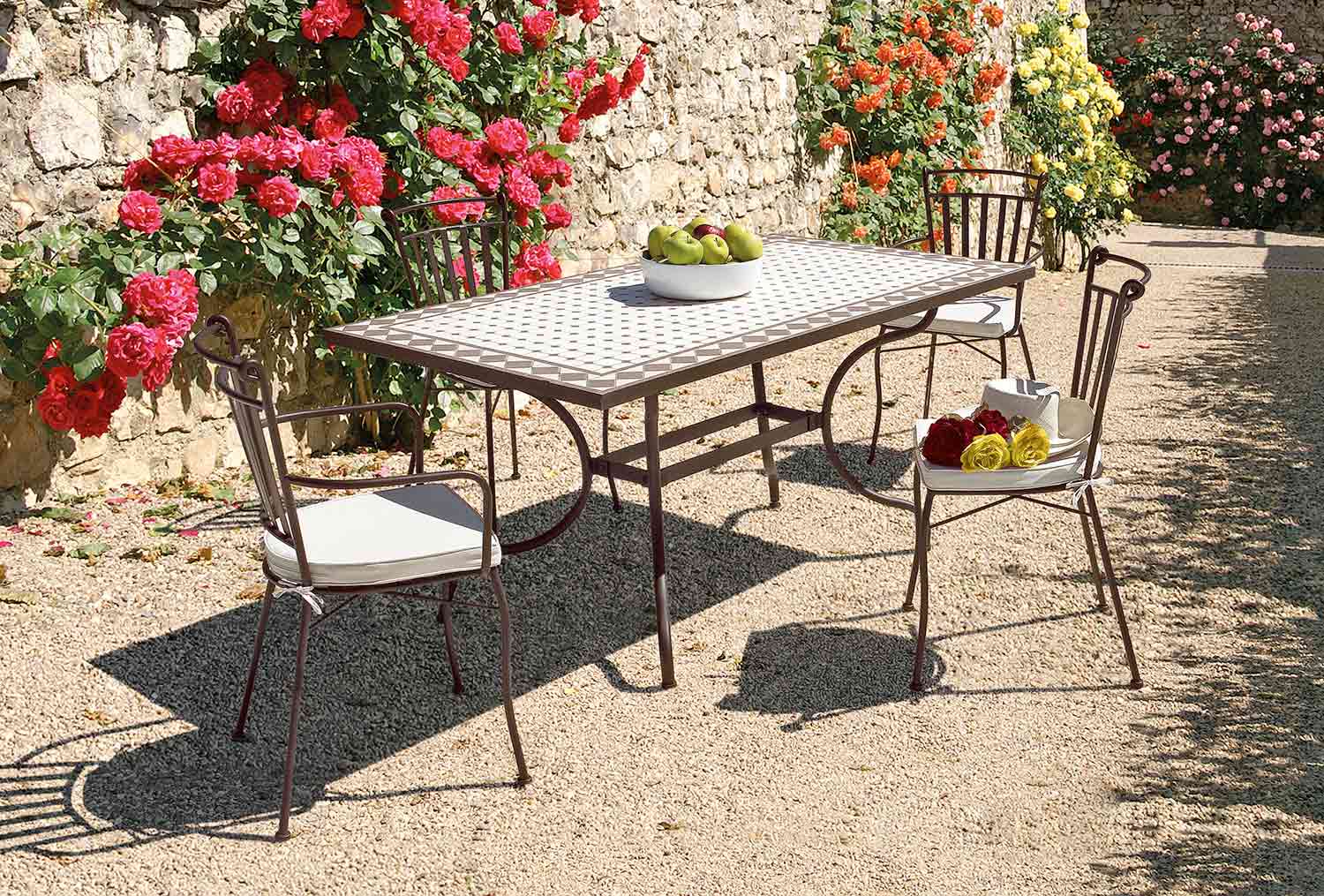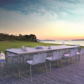 E para um café da manhã mágico e inesquecível, almoço ou jantar no jardim, oferecemos uma grande variedade de mesas com tampo de vidro ou cerâmica, retangular, redondo ou oval para combinar com cadeiras coordenadas com o design da sua mesa favorita.