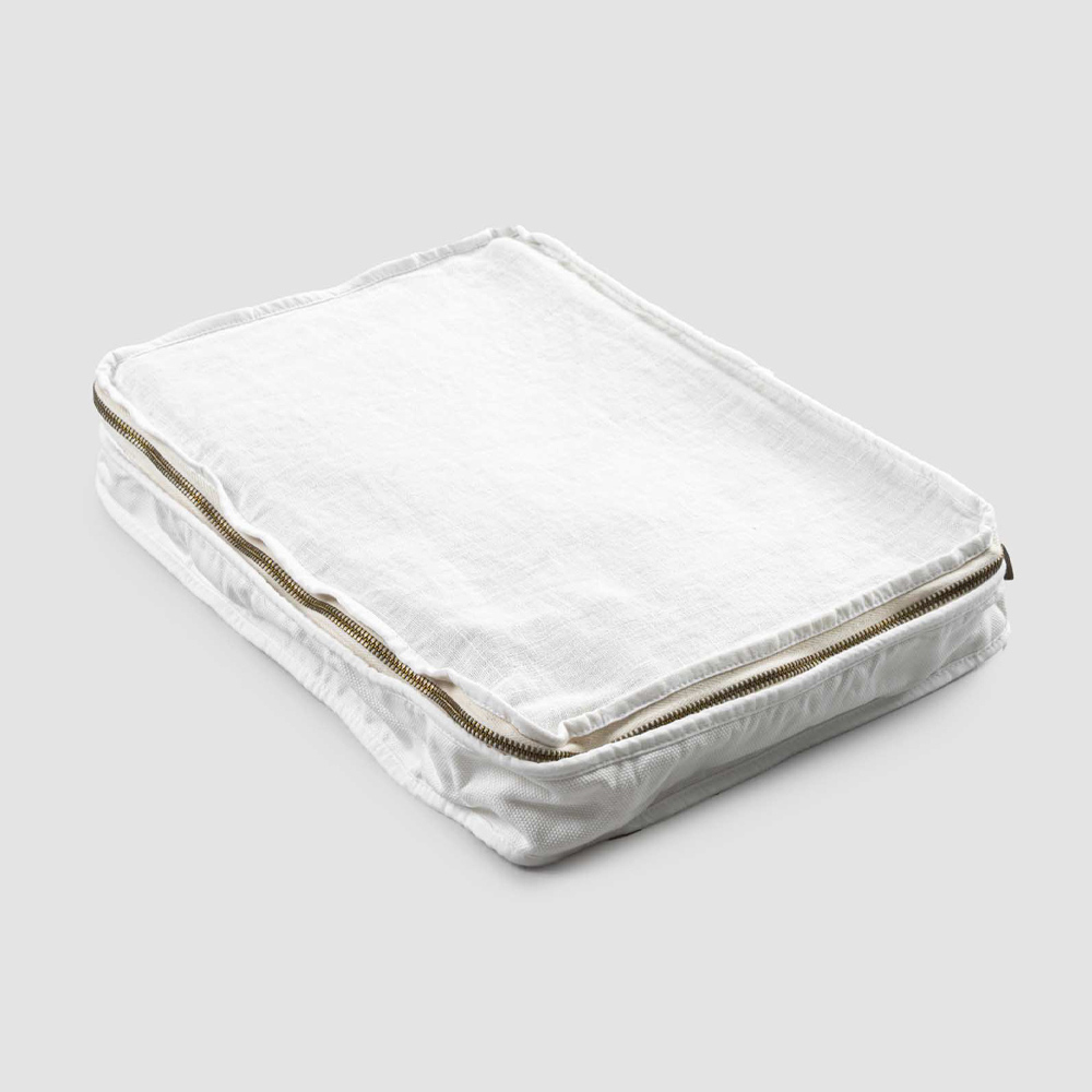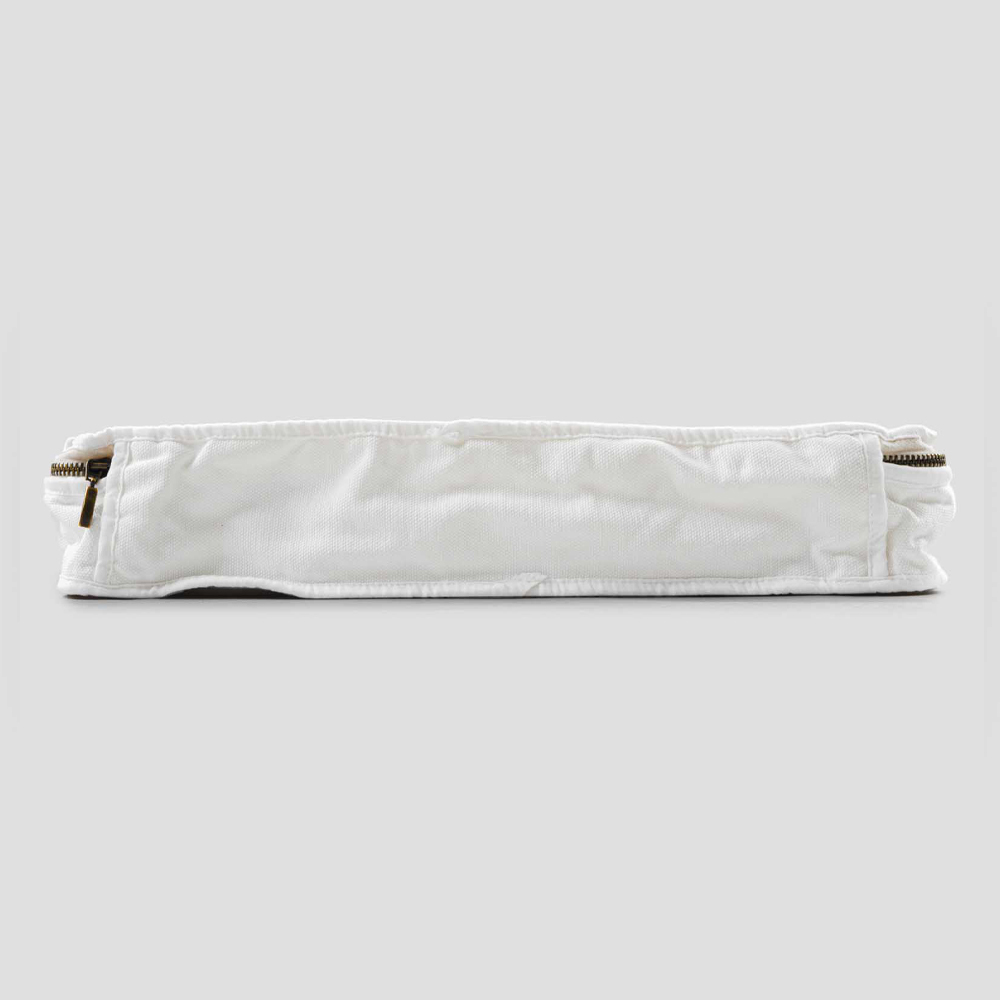 Feita na Itália com linho e algodão de alta qualidade e macia ao toque graças a tratamentos especiais que realçam sua aparência natural, a bolsa cosmética é criada com um tecido hipoalergênico e antibacteriano , além do uso de corantes naturais e hipoalergênicos que eles dão brilho e vivacidade à fibra natural.
