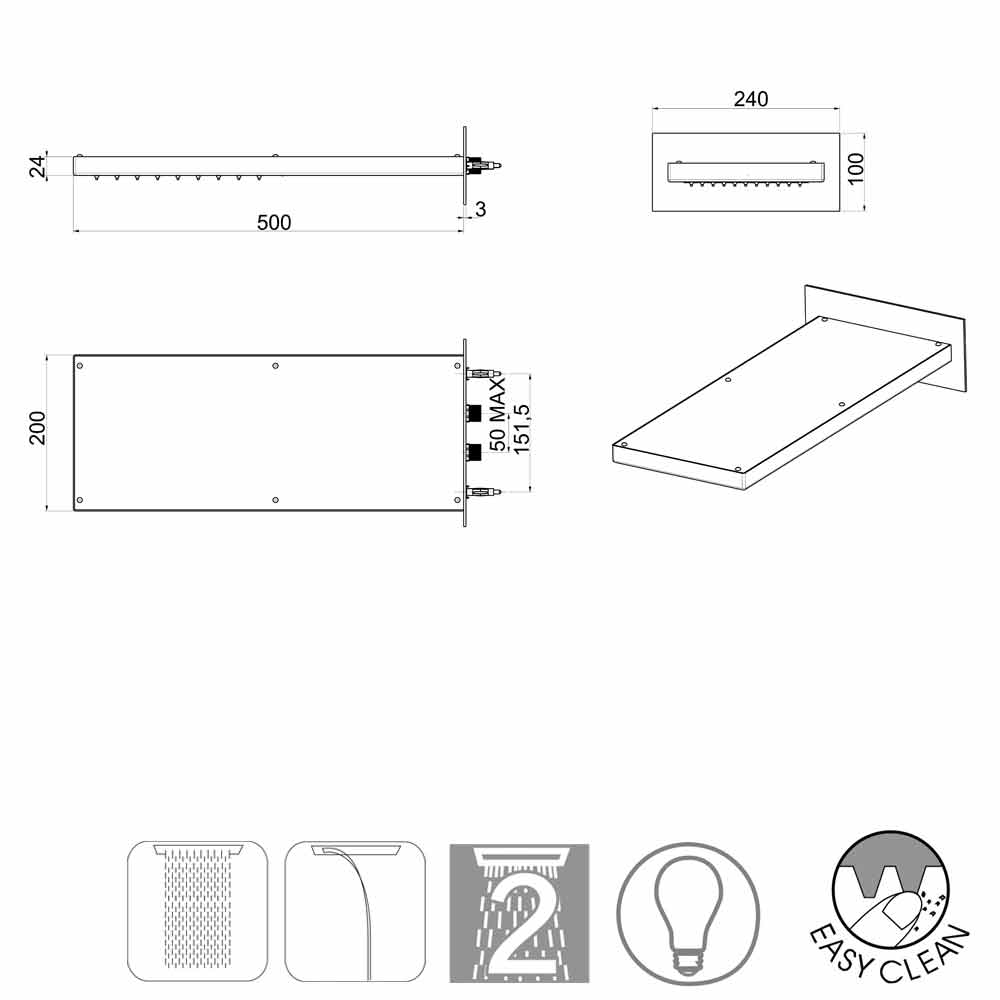 Cabeça de chuveiro em aço inoxidável de Manhattan com 2 jatos de chuva e cascata.