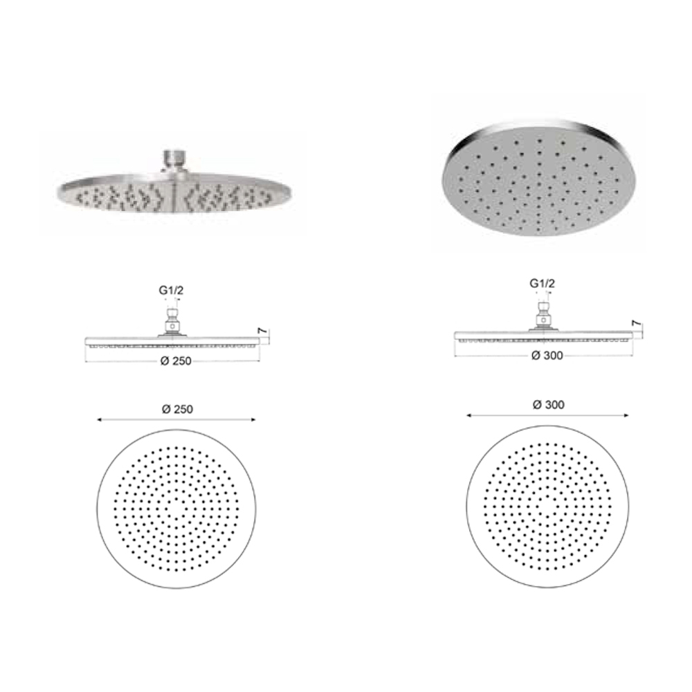- cabeça de chuveiro: diâmetro 30 cm x altura 7 cm - braço 35 cm