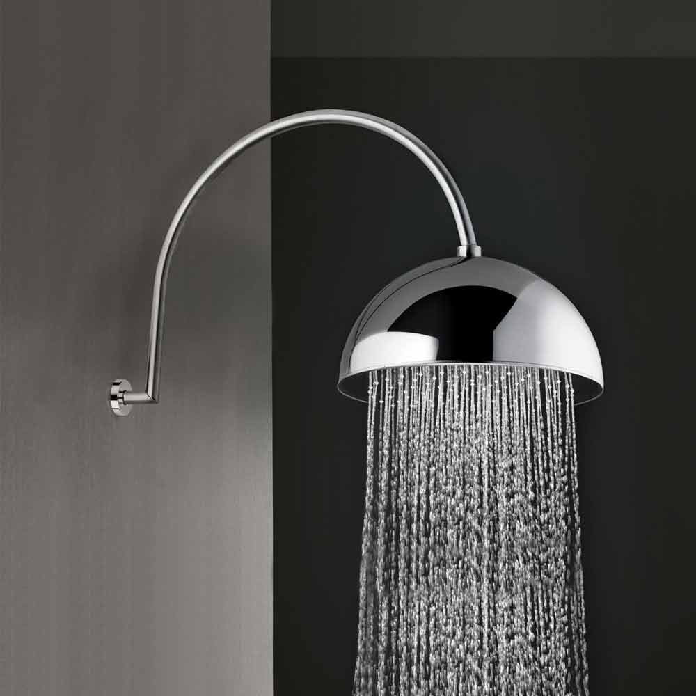 Moderno chuveiro de parede em aço inoxidável cromado fabricado na Itália.