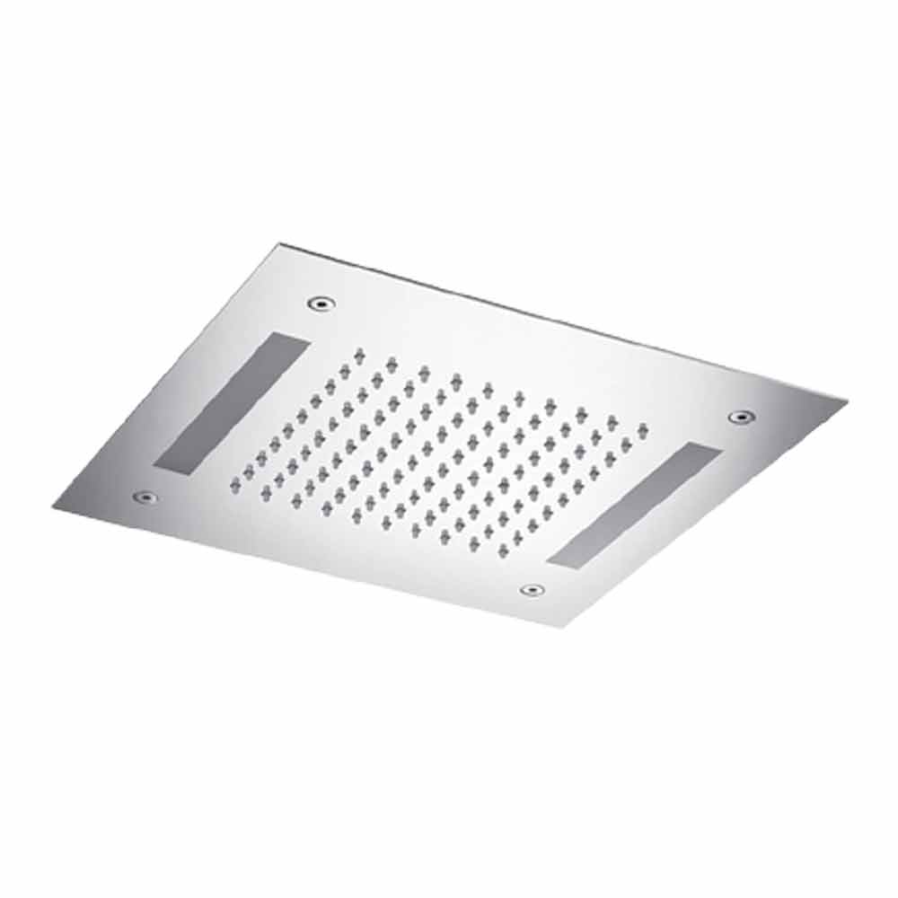 Chuveiro quadrado em aço inox com cromoterapia, fino item Made in Italy.