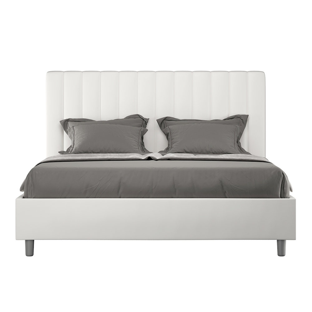 Cama de casal estofada de 160x200 cm revestida em couro sintético, fabricada na Itália.