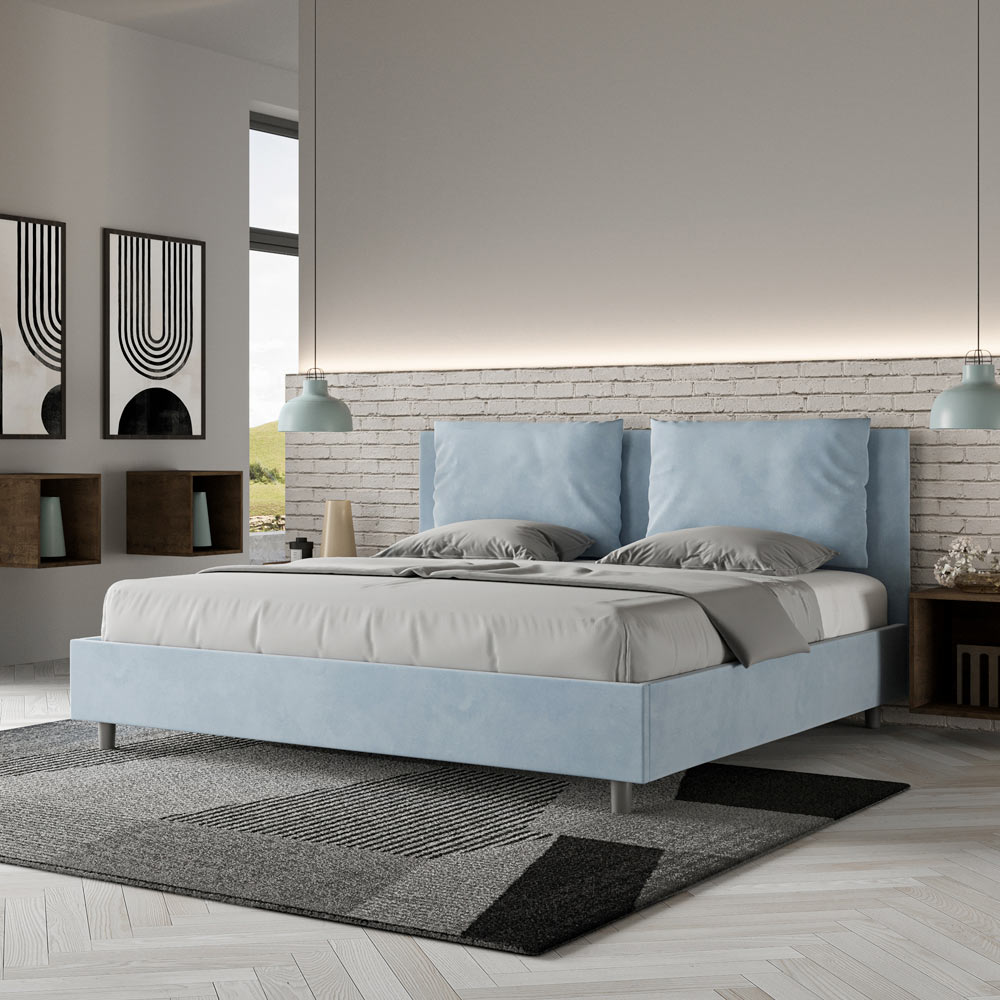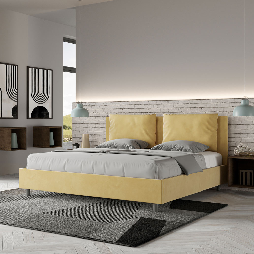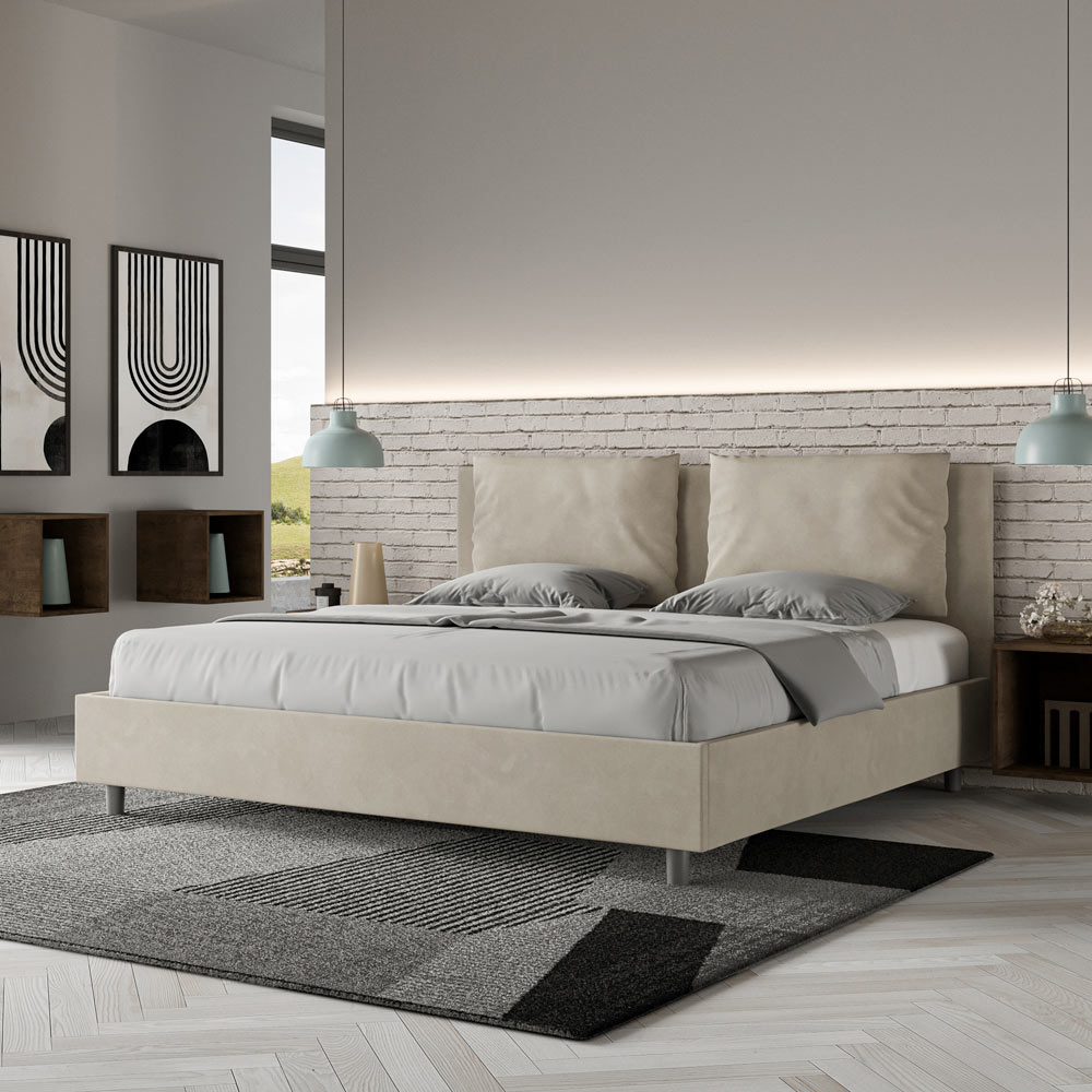 Cama king size 190x200 cm estofada, feita com painéis de melamina e revestida em microfibra , inteiramente fabricada na Itália. Esta cama king-size com estrutura estofada incorpora perfeitamente as vantagens de uma cama estofada: conforto, estilo contemporâneo, funcionalidade e aproveitamento eficiente do espaço . Com sua cabeceira ampla e acolchoada , esta cama oferece um canto relaxante, ideal para leitura ou para assistir TV, valorizando seu quarto. Elegante e sofisticada, esta cama é revestida em microfibra, facilitando a limpeza: basta passar um pano de microfibra para mantê-la impecável.