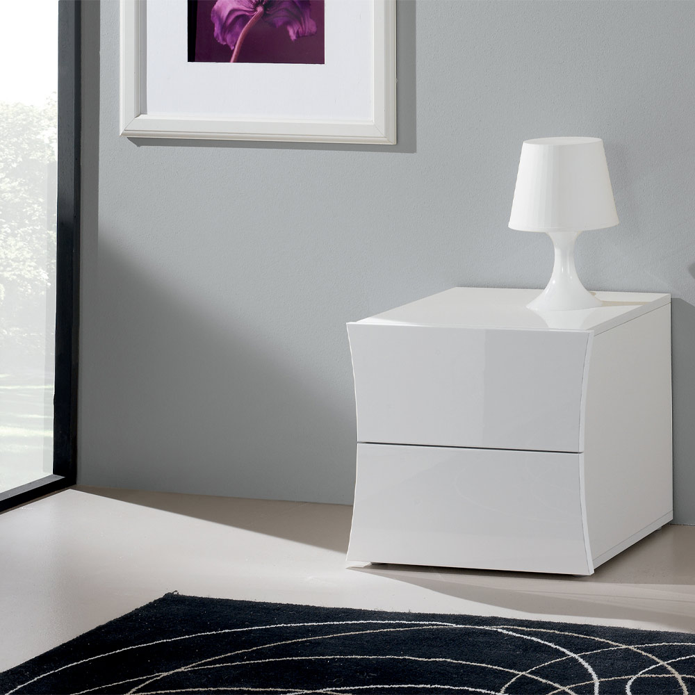 Mesa de cabeceira com 2 gavetas para o quarto de design branco, made in Italy.