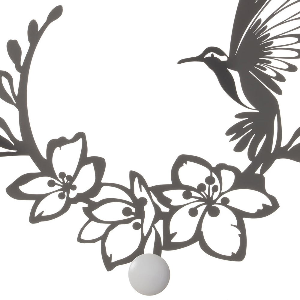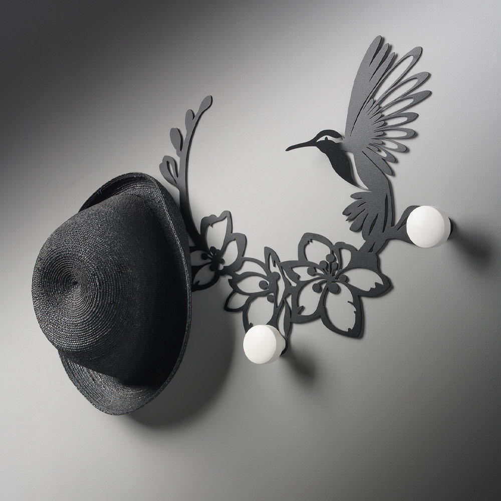 beija-flor colocado sobre um galho , o que lhe confere leveza e beleza. Os
