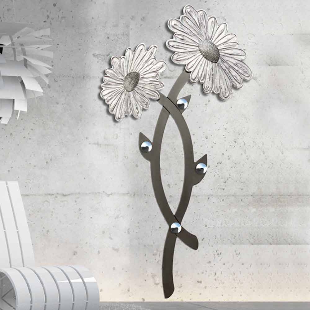 Cabide de parede Floral Clarke, cor prata, design moderno, fabricado na Itália