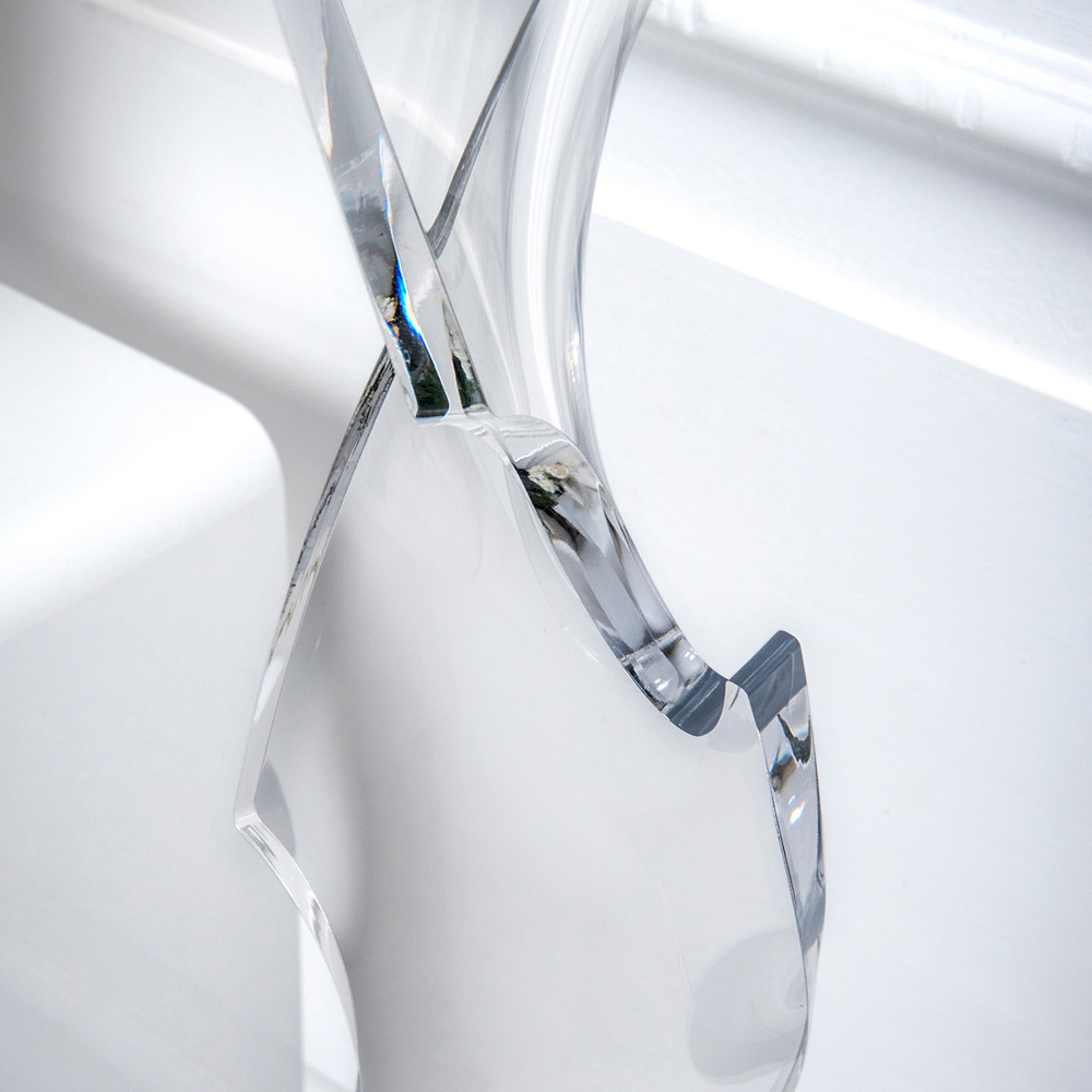 Funcionalidade e maestria artística se encontram neste móvel, criando não apenas um objeto utilitário , mas uma obra de arte em puro cristal acrílico PMMA . Esta peça não é apenas um cabide, mas uma escultura que capta e reflete a luz, criando uma atmosfera viva e brilhante em qualquer espaço.