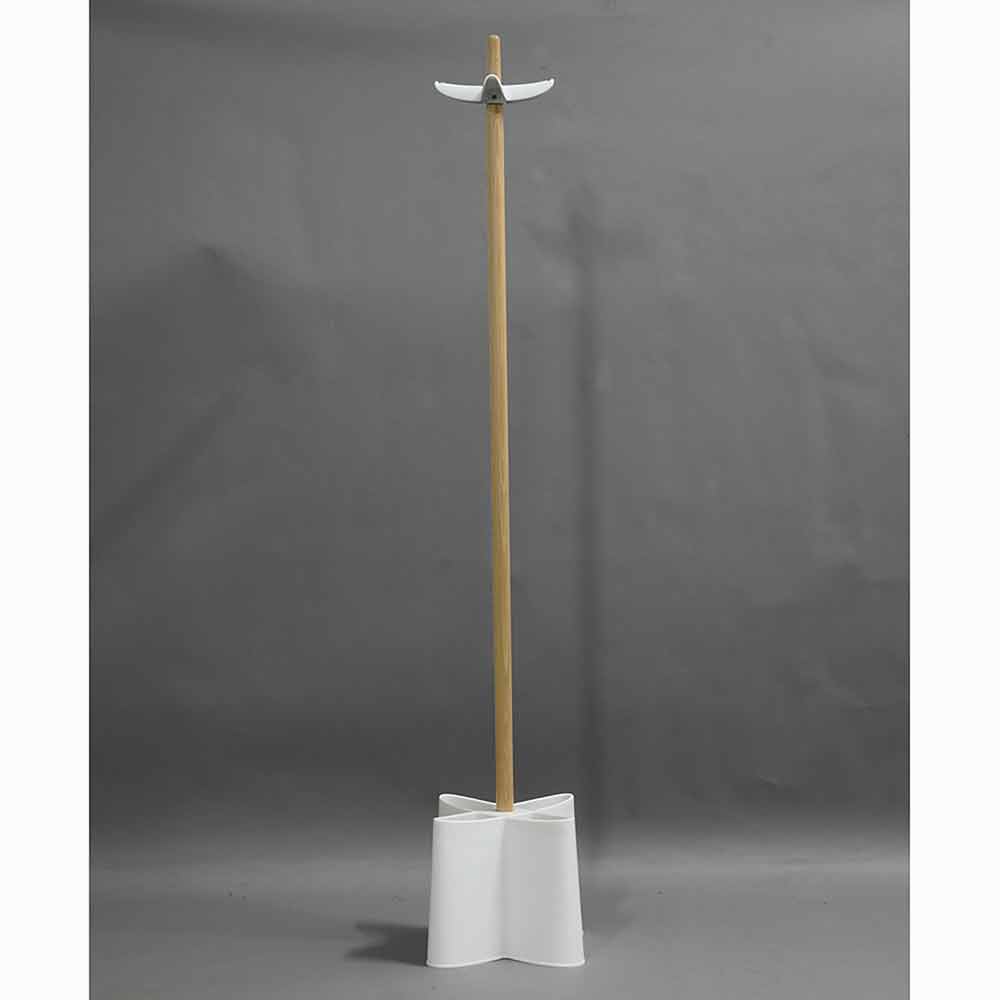 Cabide moderno com base pesada, estrutura em madeira de faia e detalhes em polipropileno.