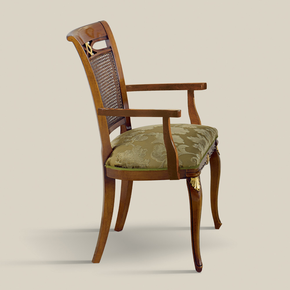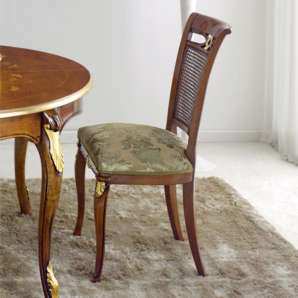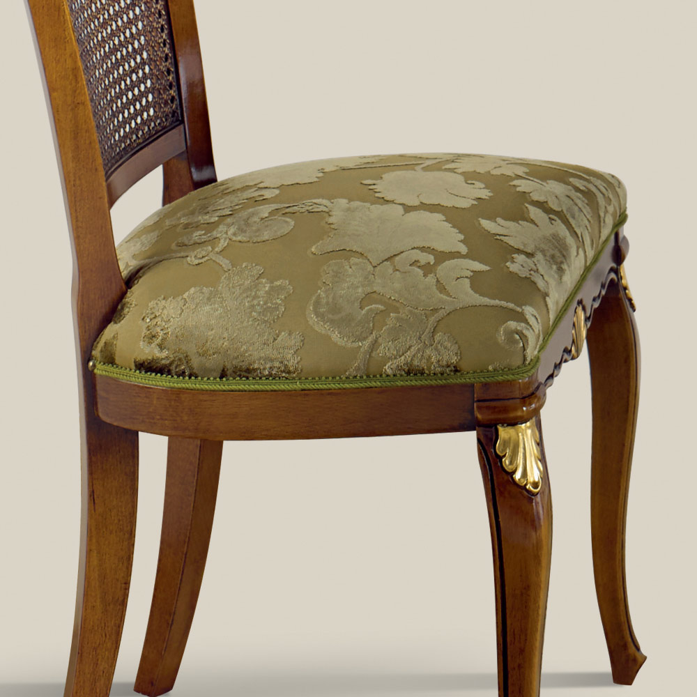 Cadeira clássica em madeira de nogueira com assento estofado Made in Italy.