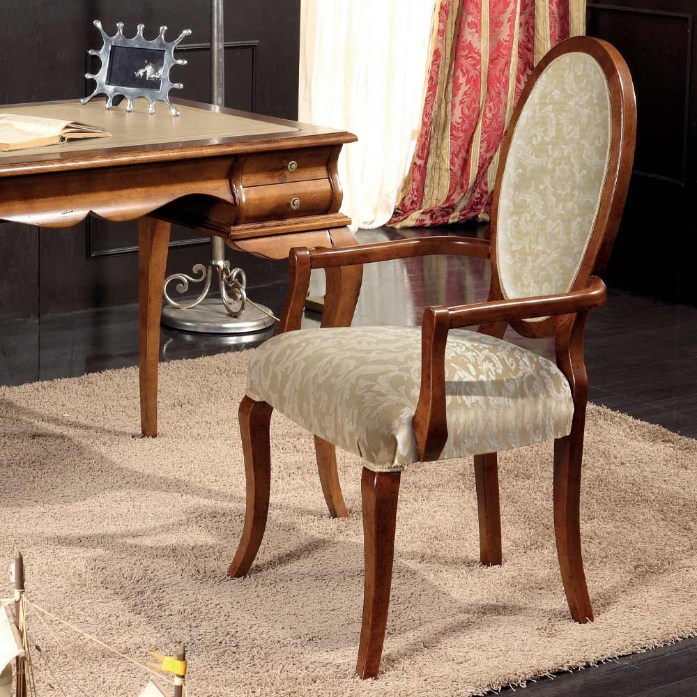 Cadeira de sala de jantar estilo clássico em madeira e tecido Made in Italy.