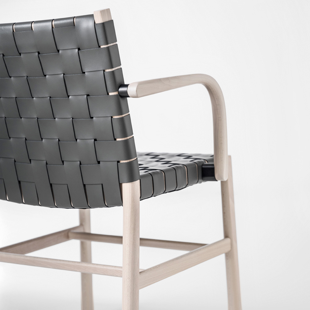 Cadeira moderna com braços made in Italy com estrutura em madeira de faia branqueada e encosto e assento em couro tecido. Tradição e modernidade se encontram e se fundem para criar este objeto de design inovador com um gosto elegante capaz de caracterizar qualquer ambiente de forma original e criativa . A particular trama de couro que cobre a cadeira torna-a extremamente fascinante , ideal para enriquecer e personalizar seus espaços com caráter. Graças à vasta gama de cores disponíveis, é possível escolher entre um look sóbrio e discreto ou uma solução mais colorida e extravagante, conseguindo assim satisfazer todas as necessidades criando uma harmonia maravilhosa com o mobiliário envolvente.