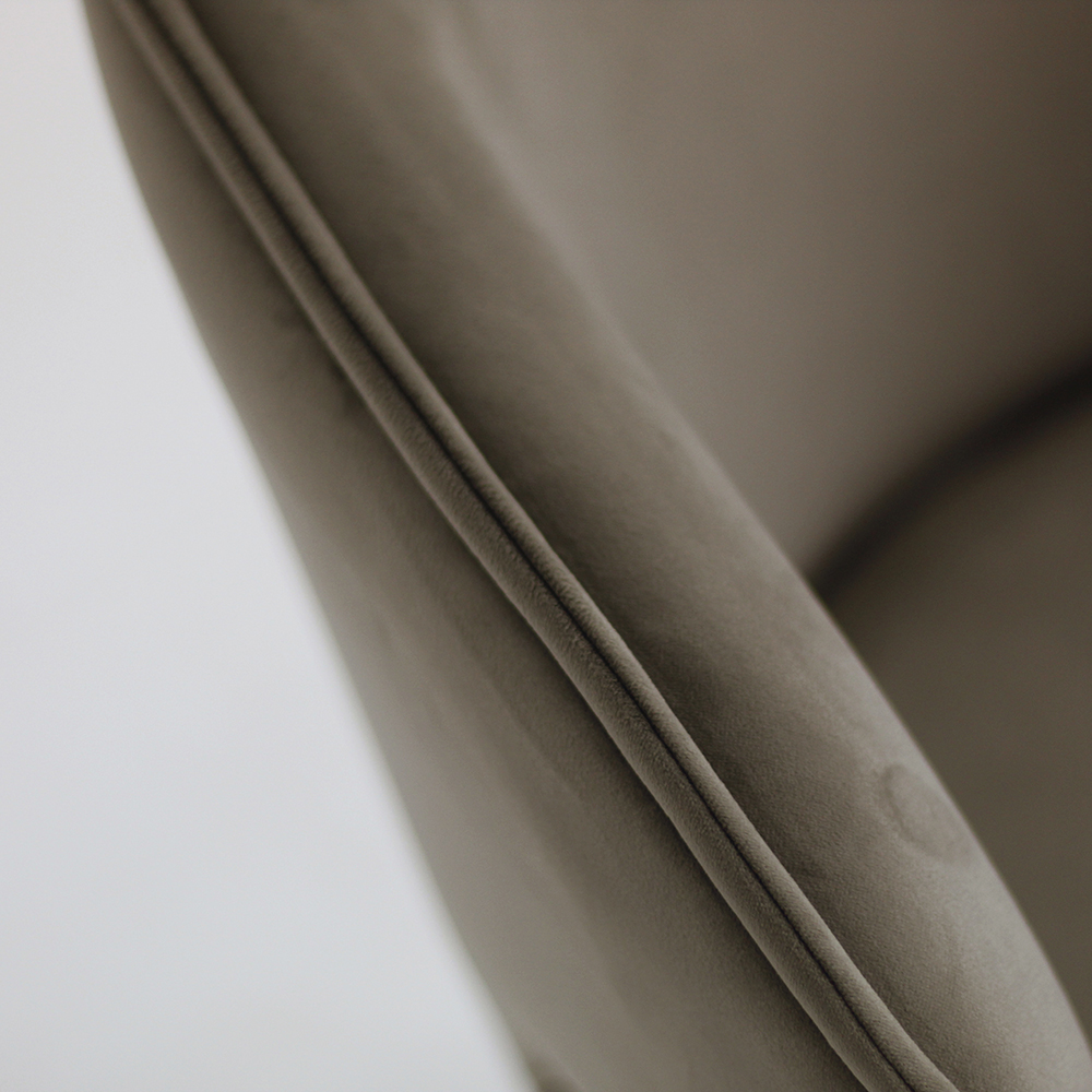 assento e encosto: veludo vison V15 e pernas: em madeira de freixo com acabamento em nogueira canaletto