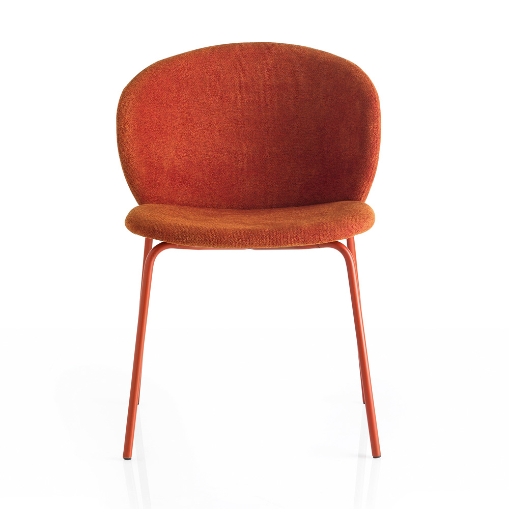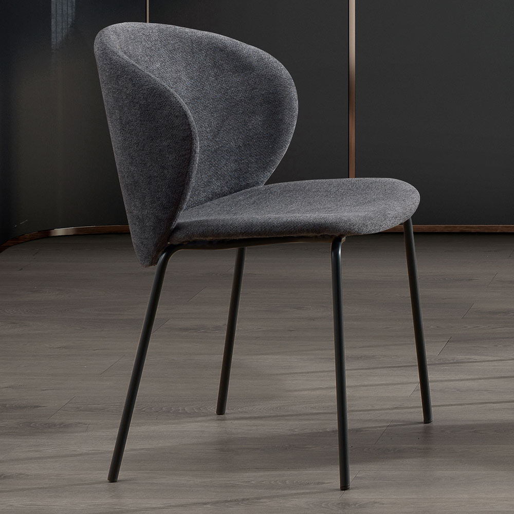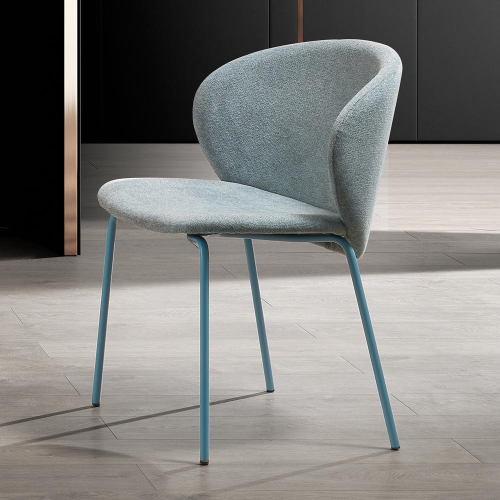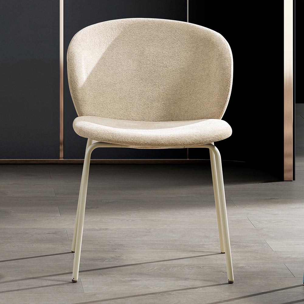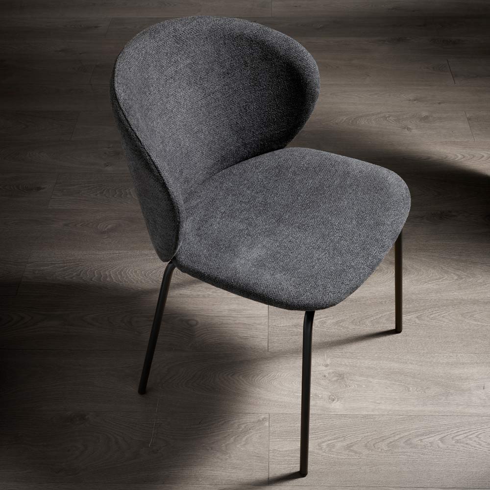 As finas pernas metálicas conferem à cadeira uma elegância subtil e uma estabilidade sólida, um contraste de materiais que se inspira tanto no modernismo industrial como na naturalidade escandinava. É uma cadeira que oferece um toque de sofisticação sem esforço a qualquer ambiente.